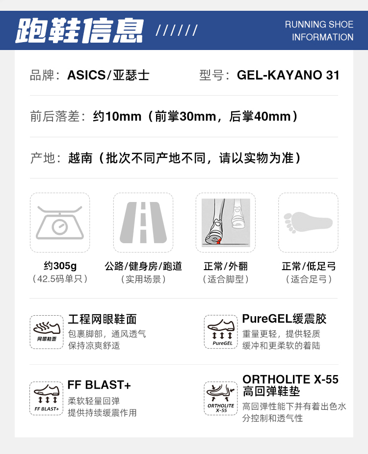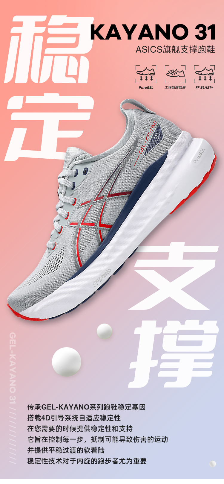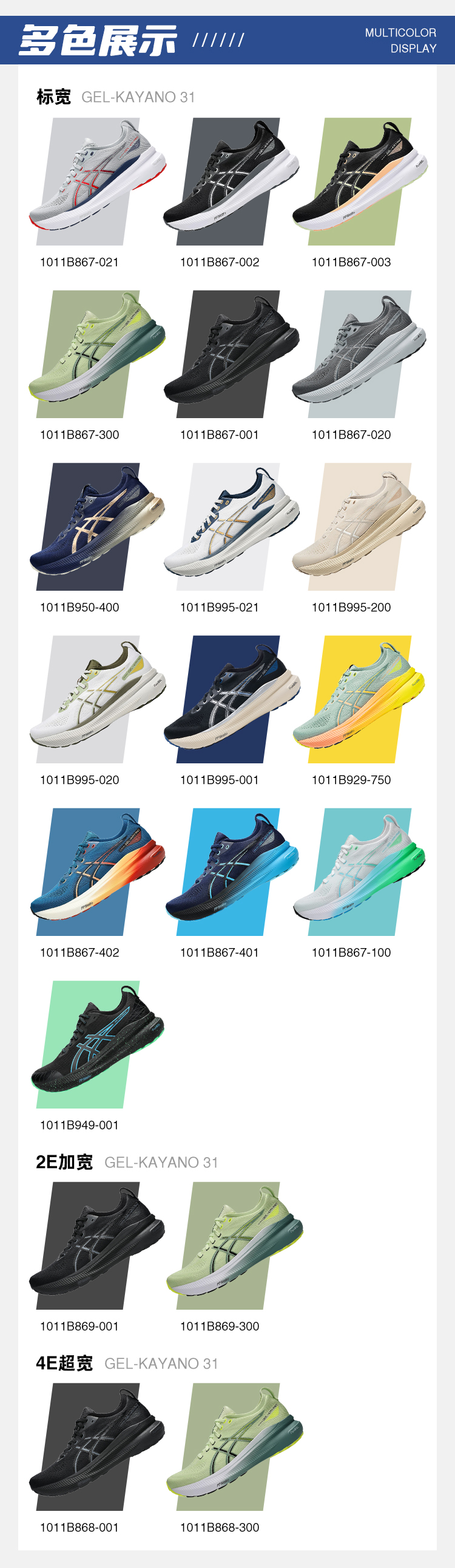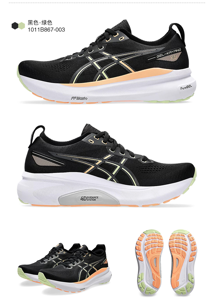 ASICS亚瑟士Kayano31男黑武士稳定支撑跑鞋K31轻量升级缓震运动