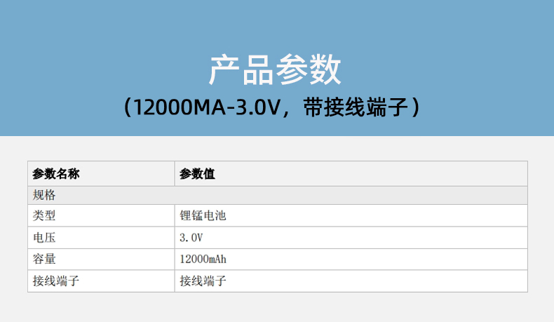 锂锰电池CR34615E(12000mA-3.0V,带接线端子)