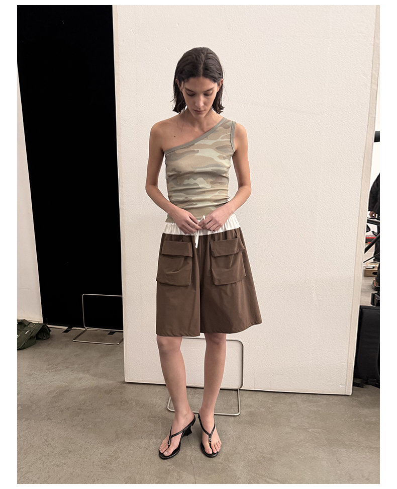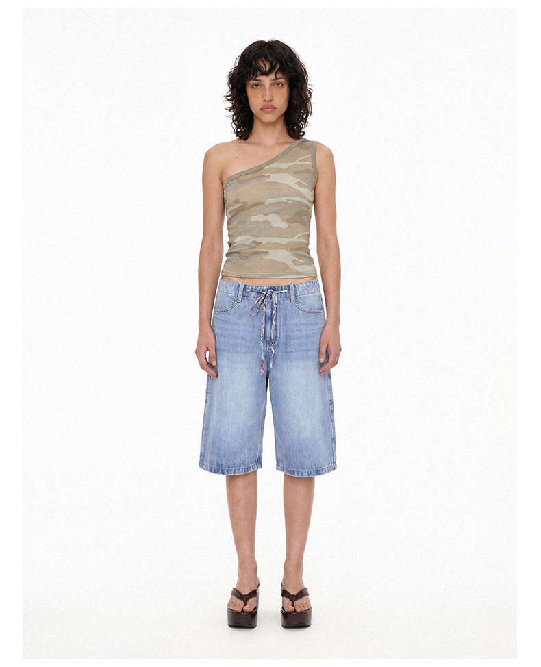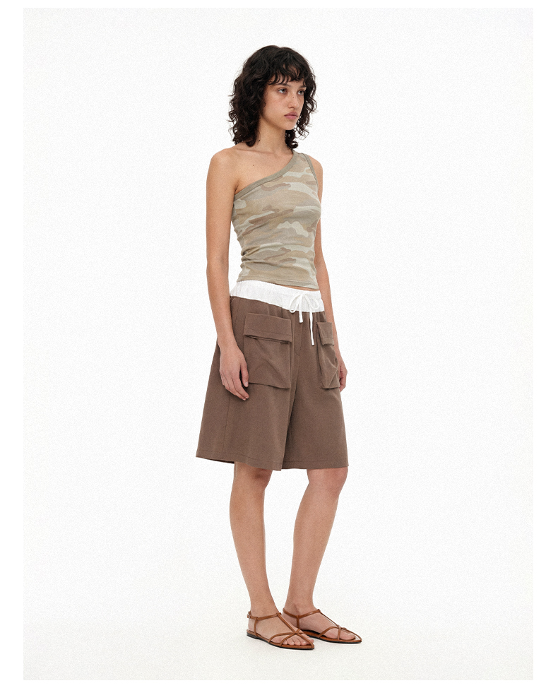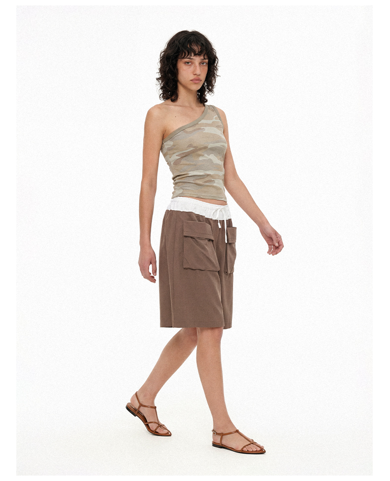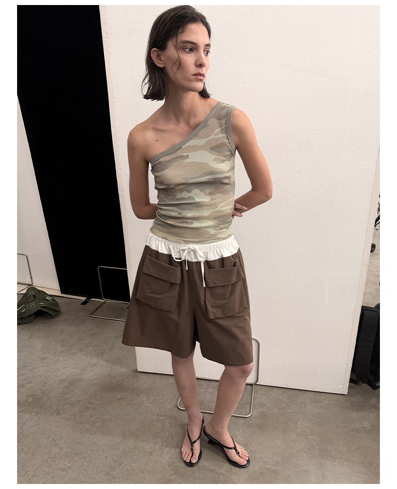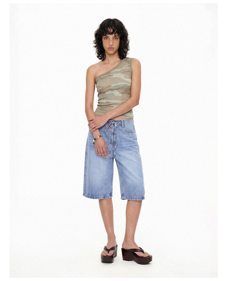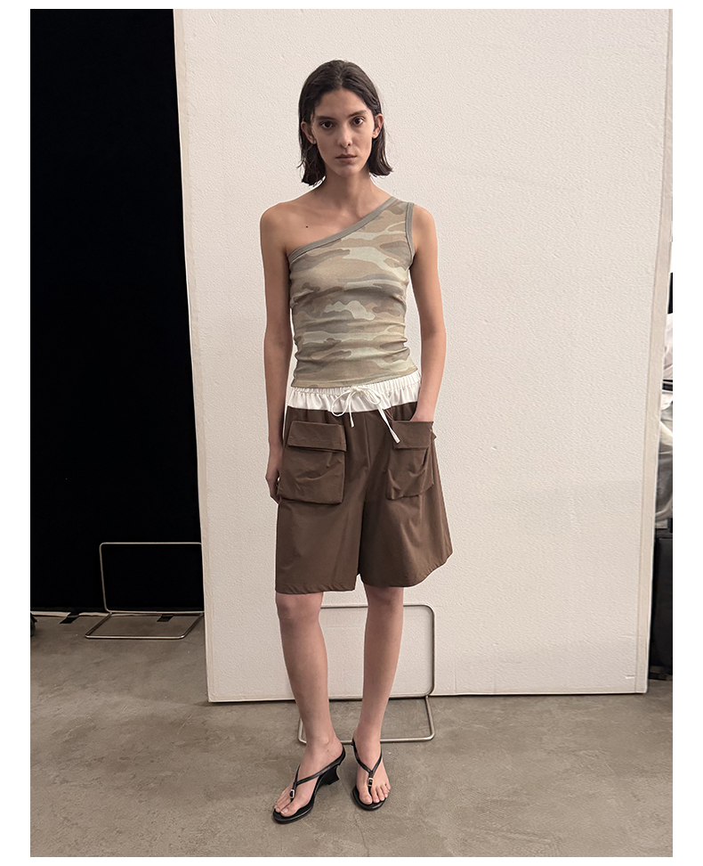 NUTH不对称斜领露肩迷彩印花修身单肩背心女(预售/发货时间同步天猫)
