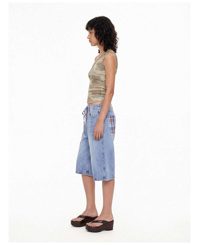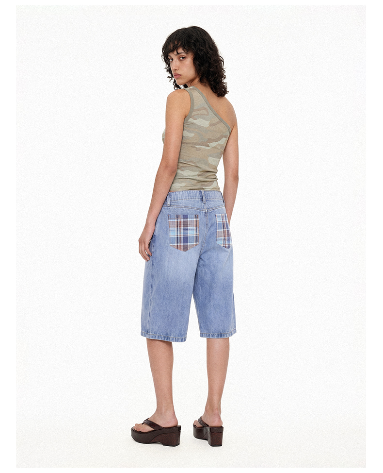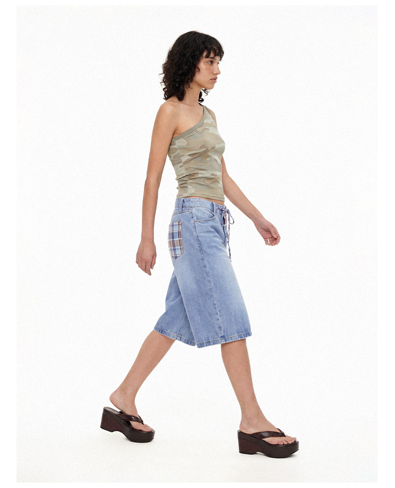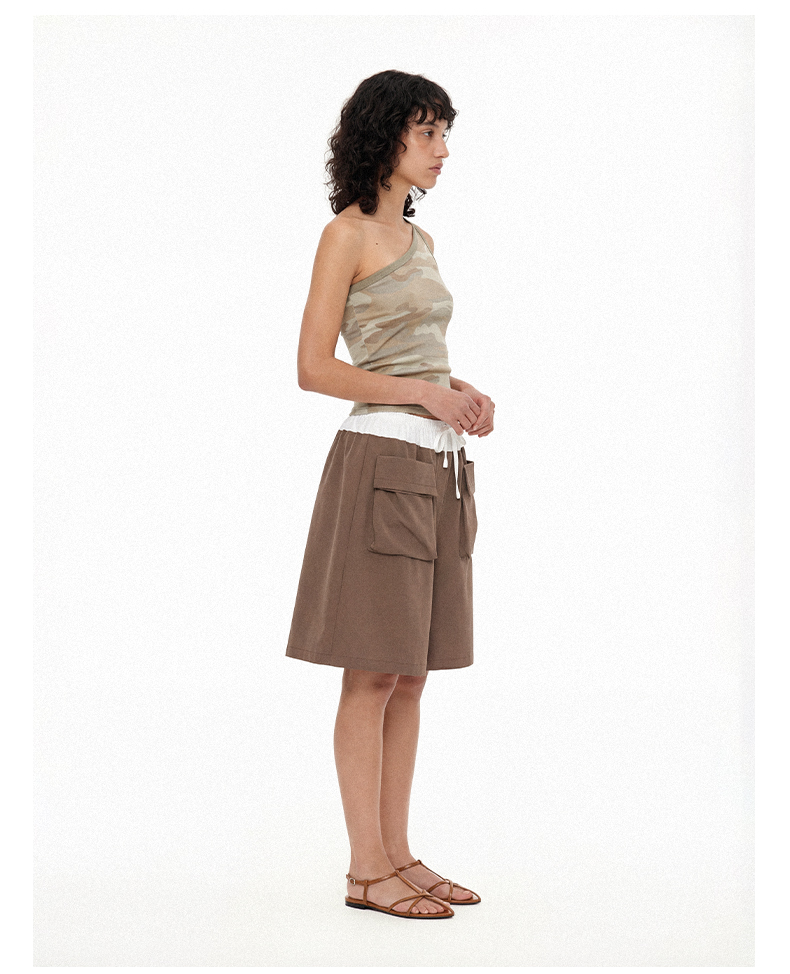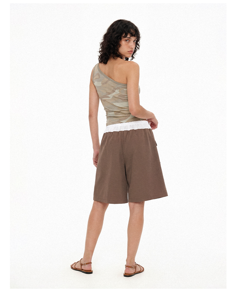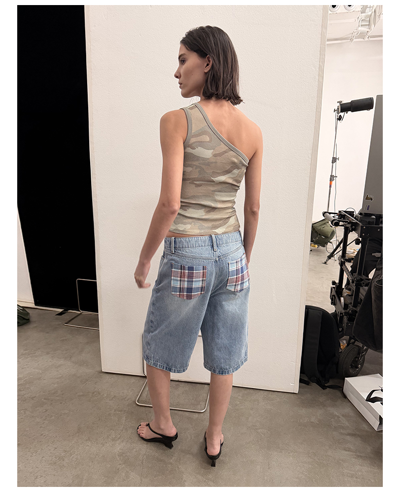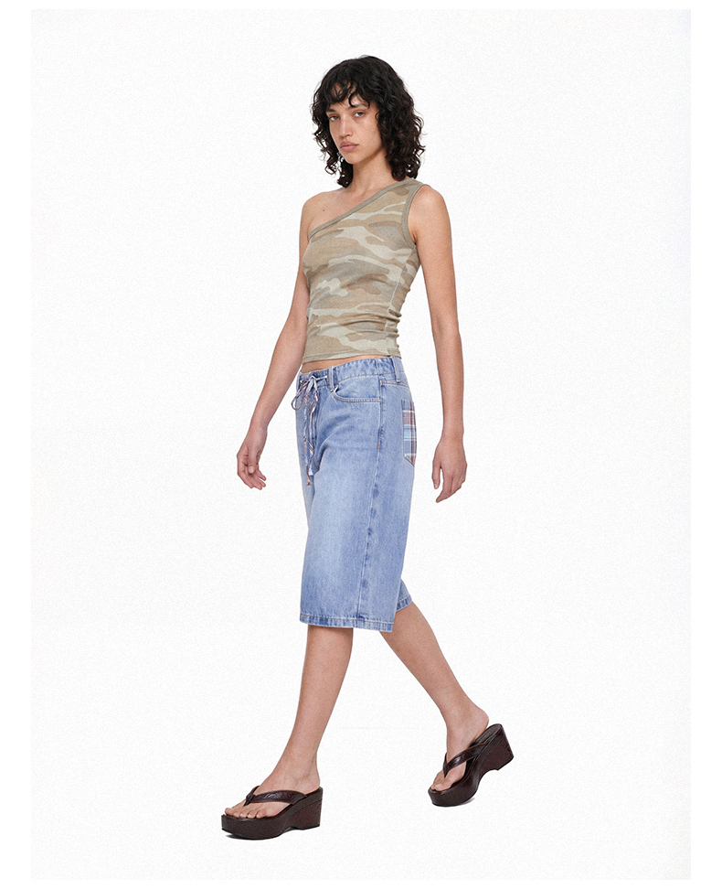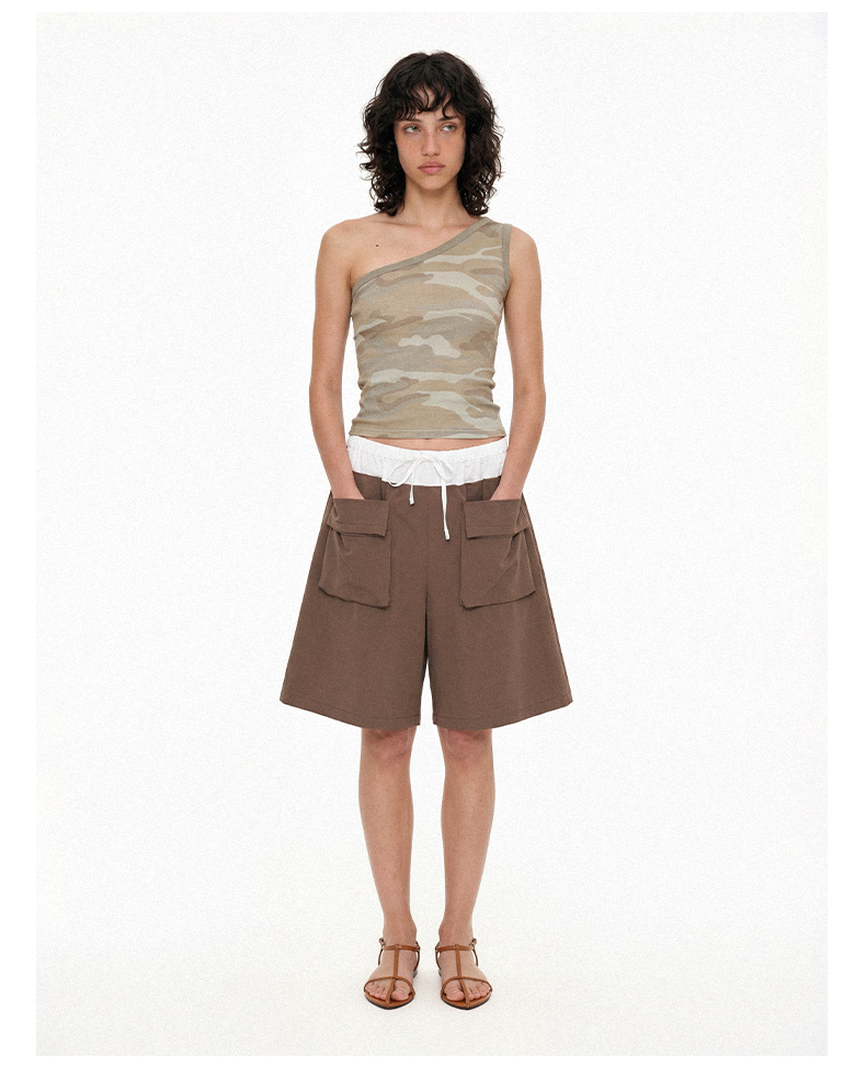 NUTH不对称斜领露肩迷彩印花修身单肩背心女(预售/发货时间同步天猫)