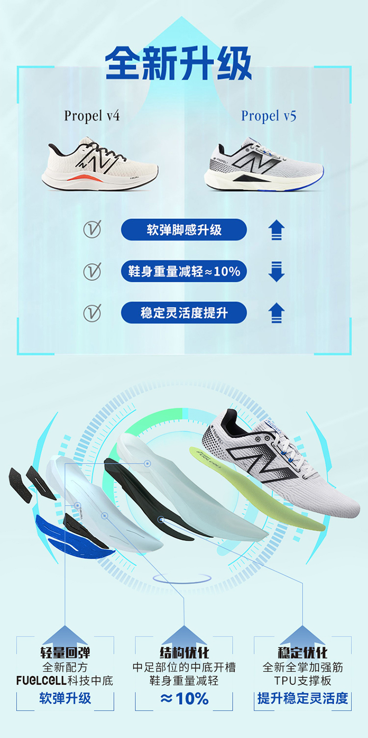 NEW BALANCE/NB 男女款Propel v5轻量透气跑步运动训练鞋