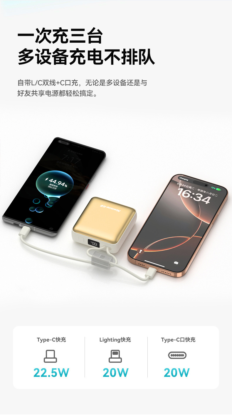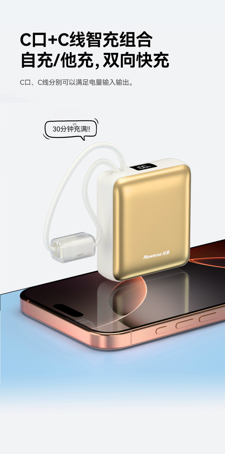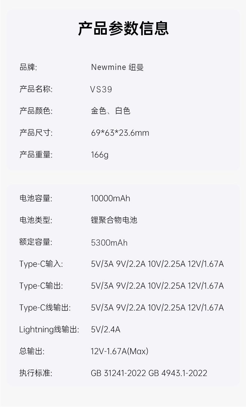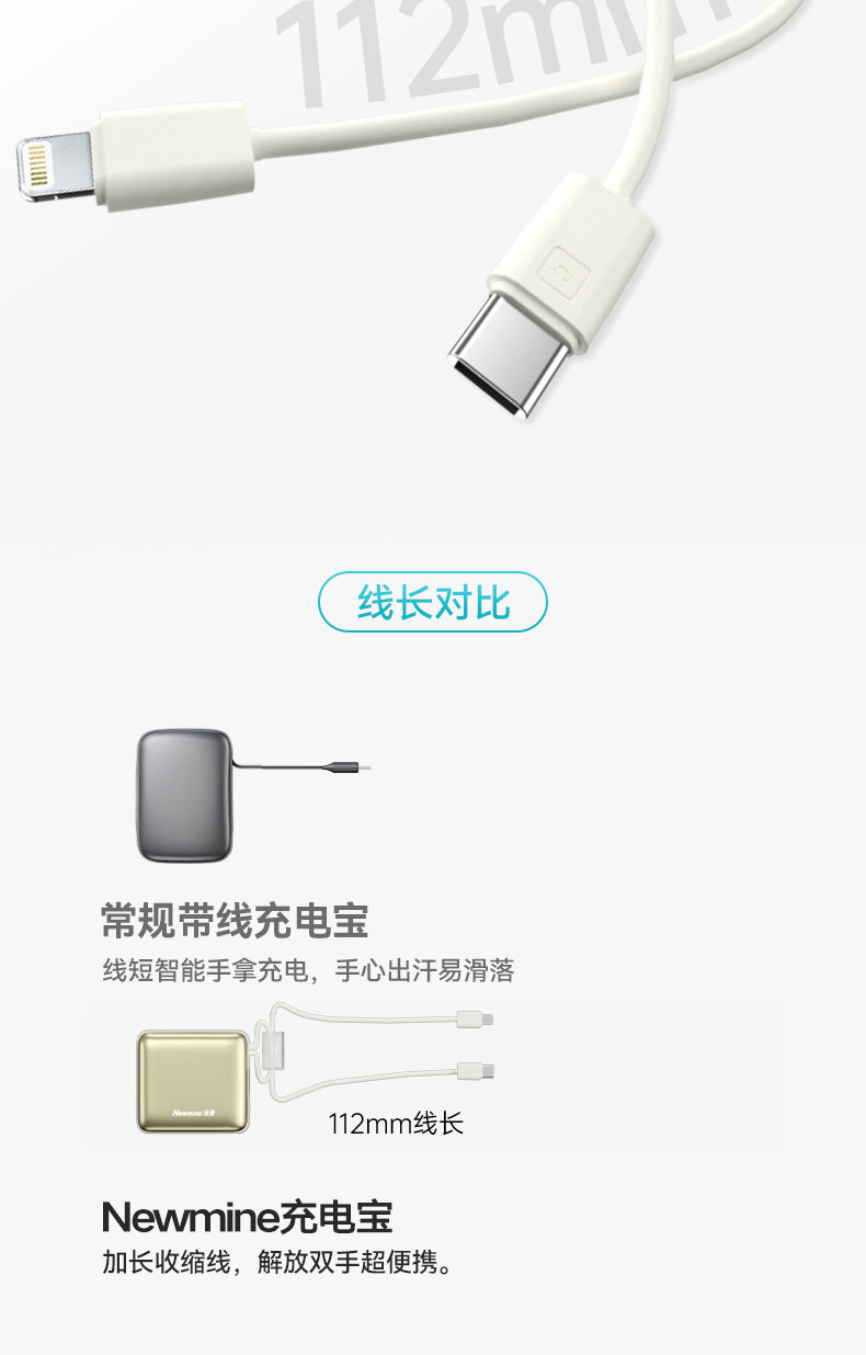 优选丨国家3C认证 纽曼VS39自带线mini移动电源