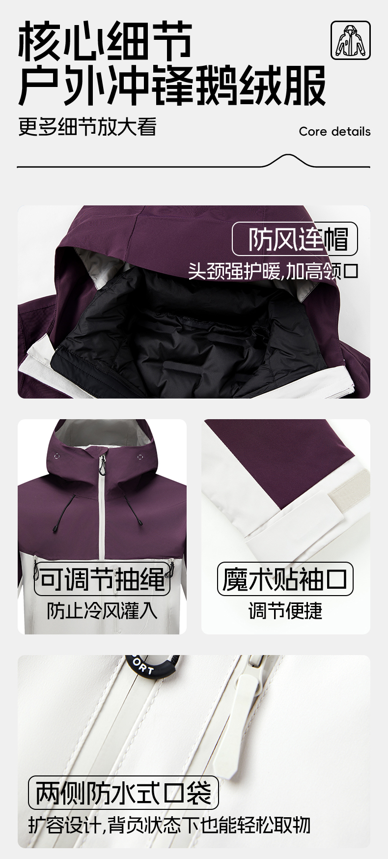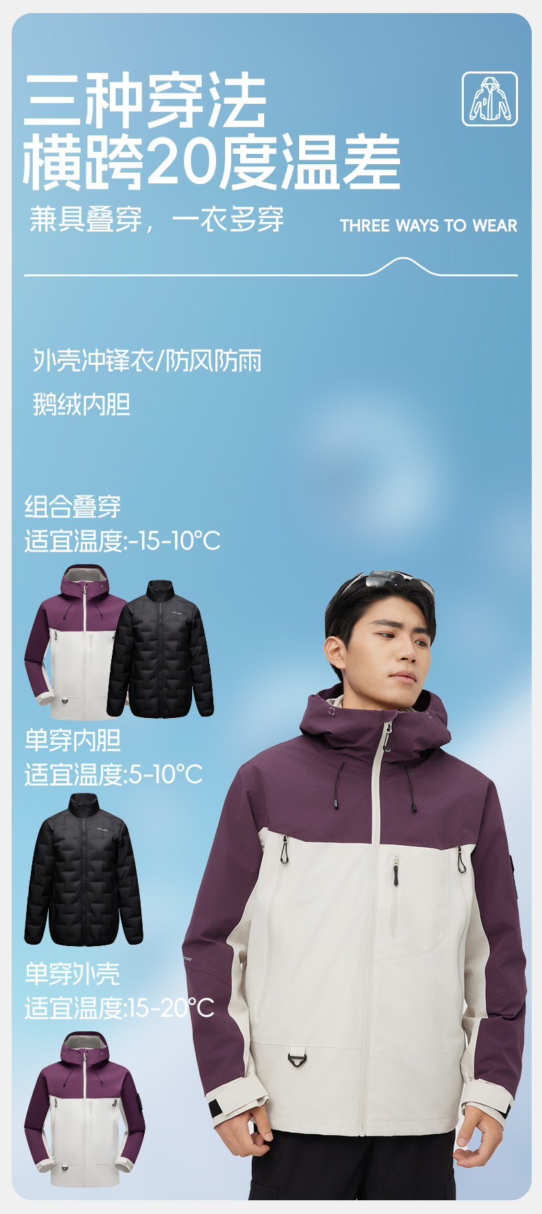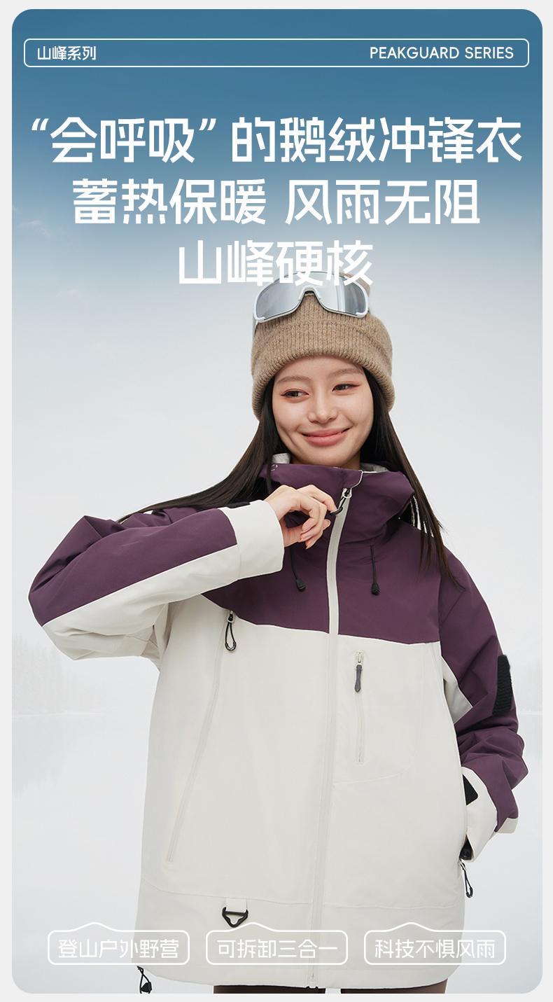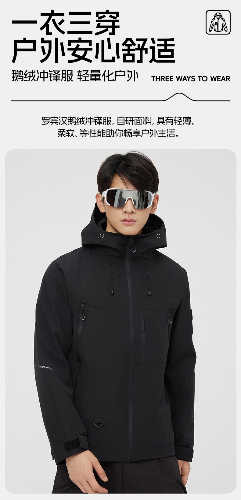 严选 | 罗宾汉山峰系列四防户外冲锋衣鹅绒羽绒服外套 一衣三穿鹅绒服 (防水、防油、防污、防静电)