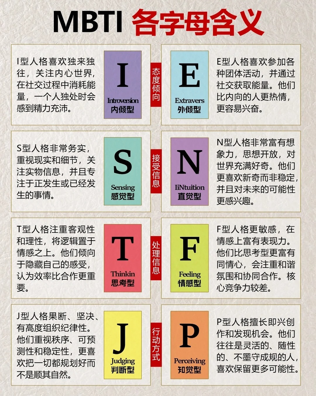 比如: INFJ(理想主义者):细腻敏感,追求深度与意义