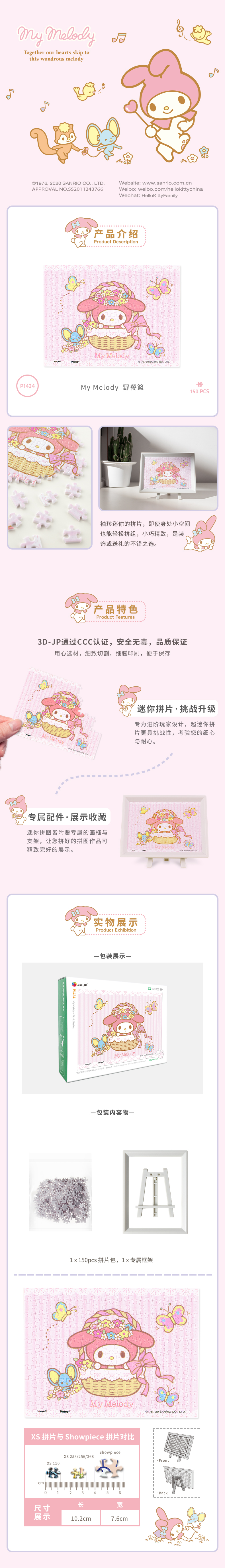 150片 迷你拼图 塑料拼图 P1434 My Melody 野餐篮(配小画框)