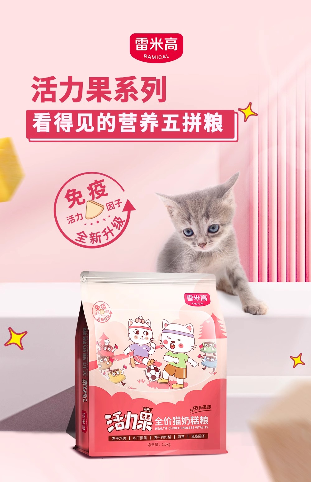【雷米高】活力果全价幼猫奶糕粮猫粮小猫咪冻干肉蛋果蔬营养五拼主食