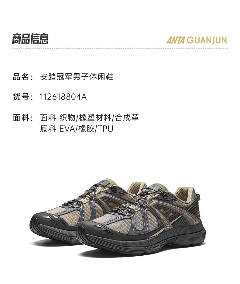 安踏冠军G02Wandering户外休闲鞋男女复古山系运动鞋子112618804A