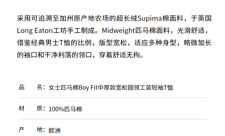 SUNSPEL女士经典款Supima棉Boy Fit短袖T恤春夏休闲舒适透气轻薄