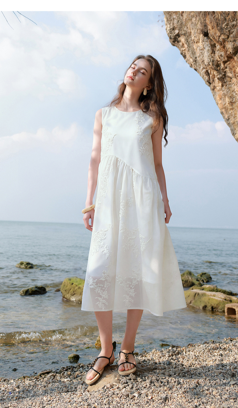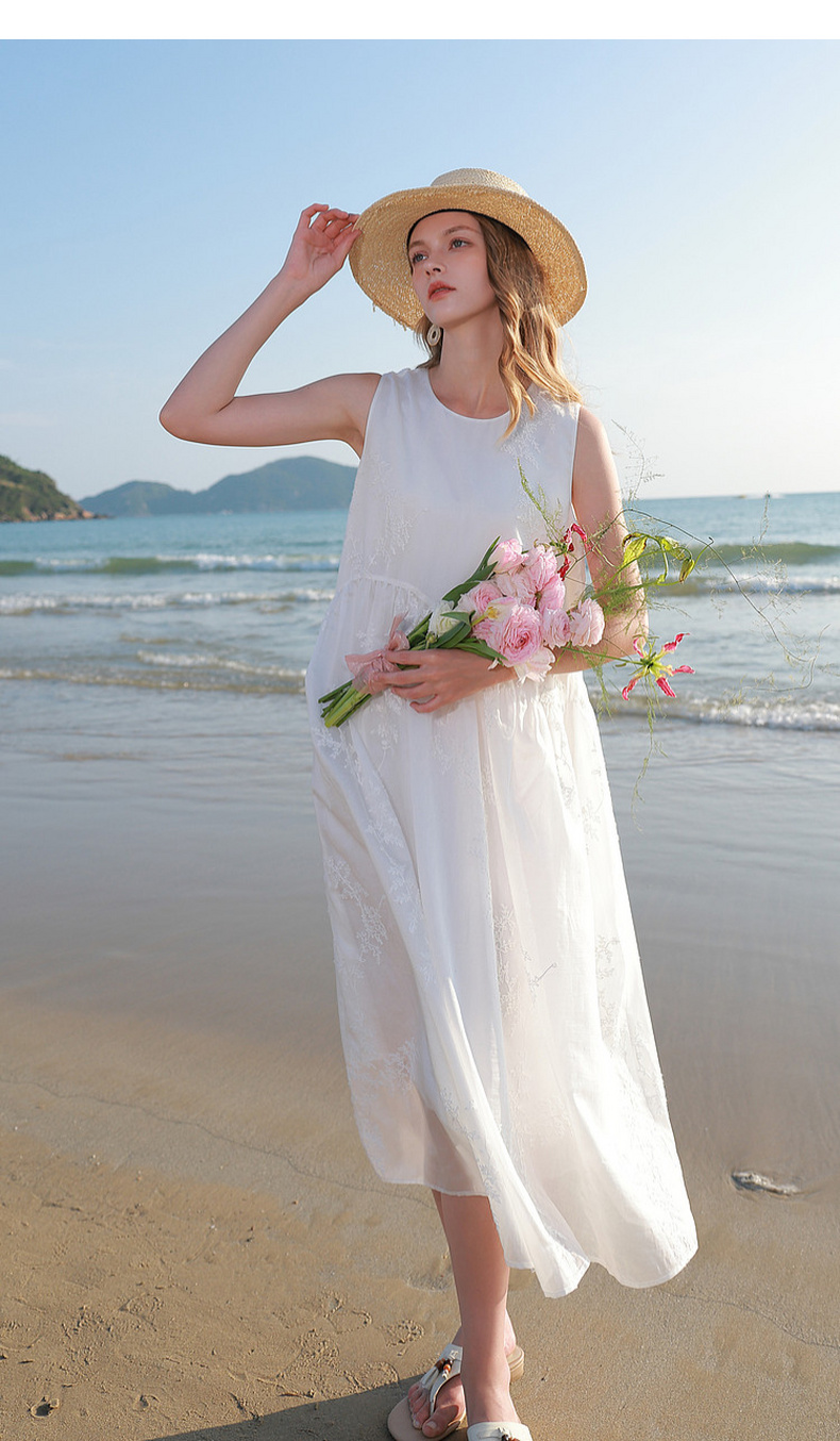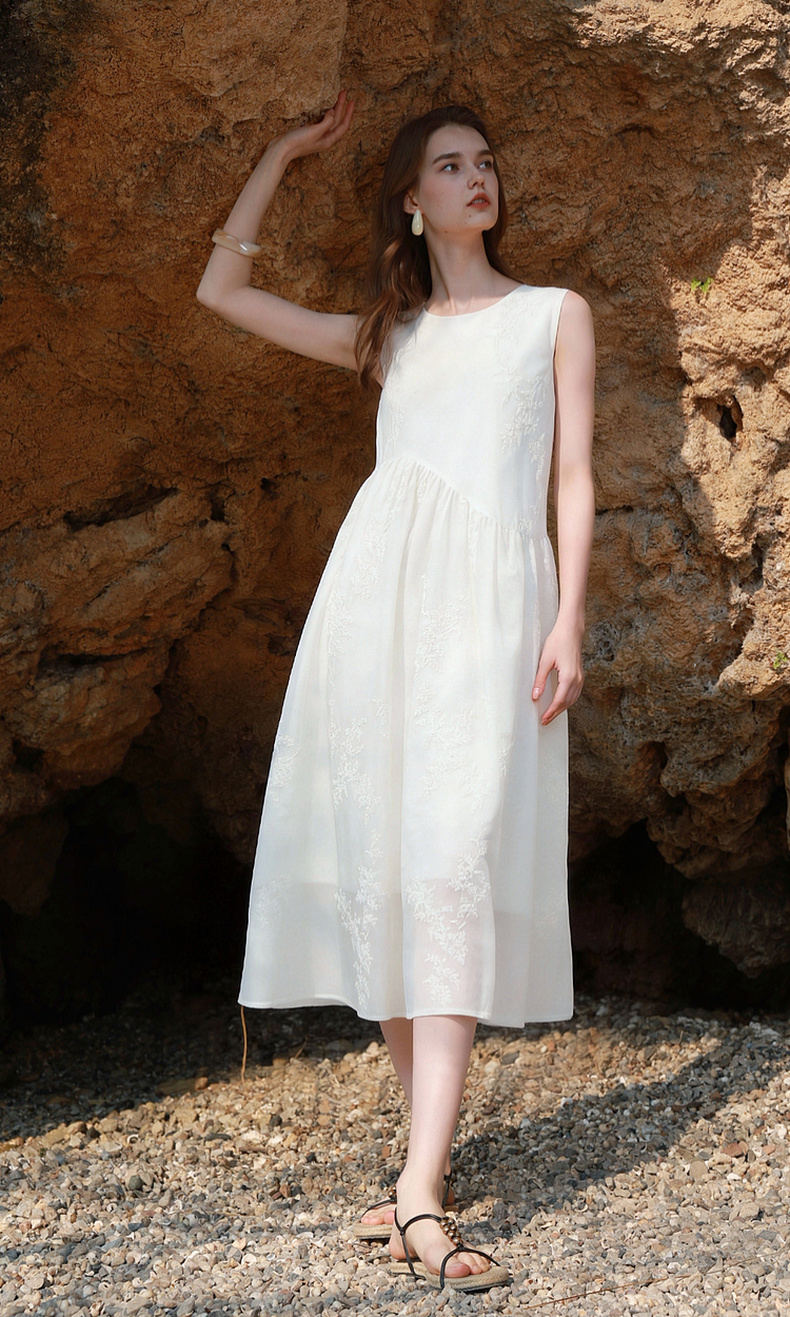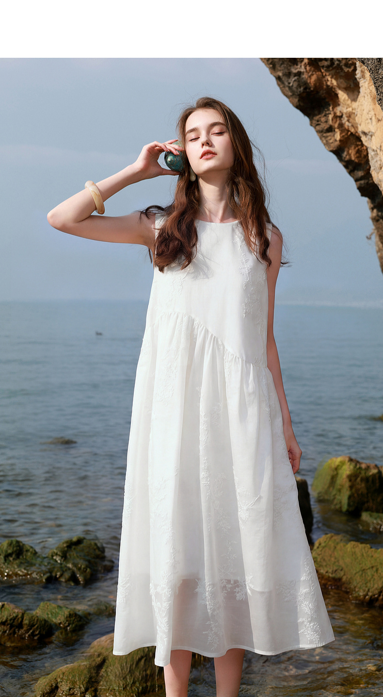 【莱赛尔】三彩2026夏季新款法式小白裙绣花连衣裙A字长裙M