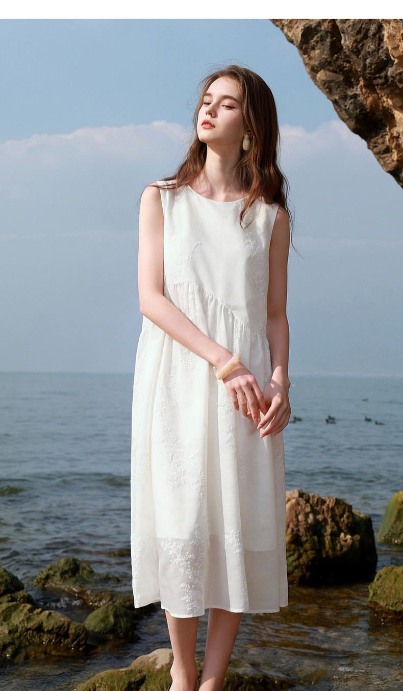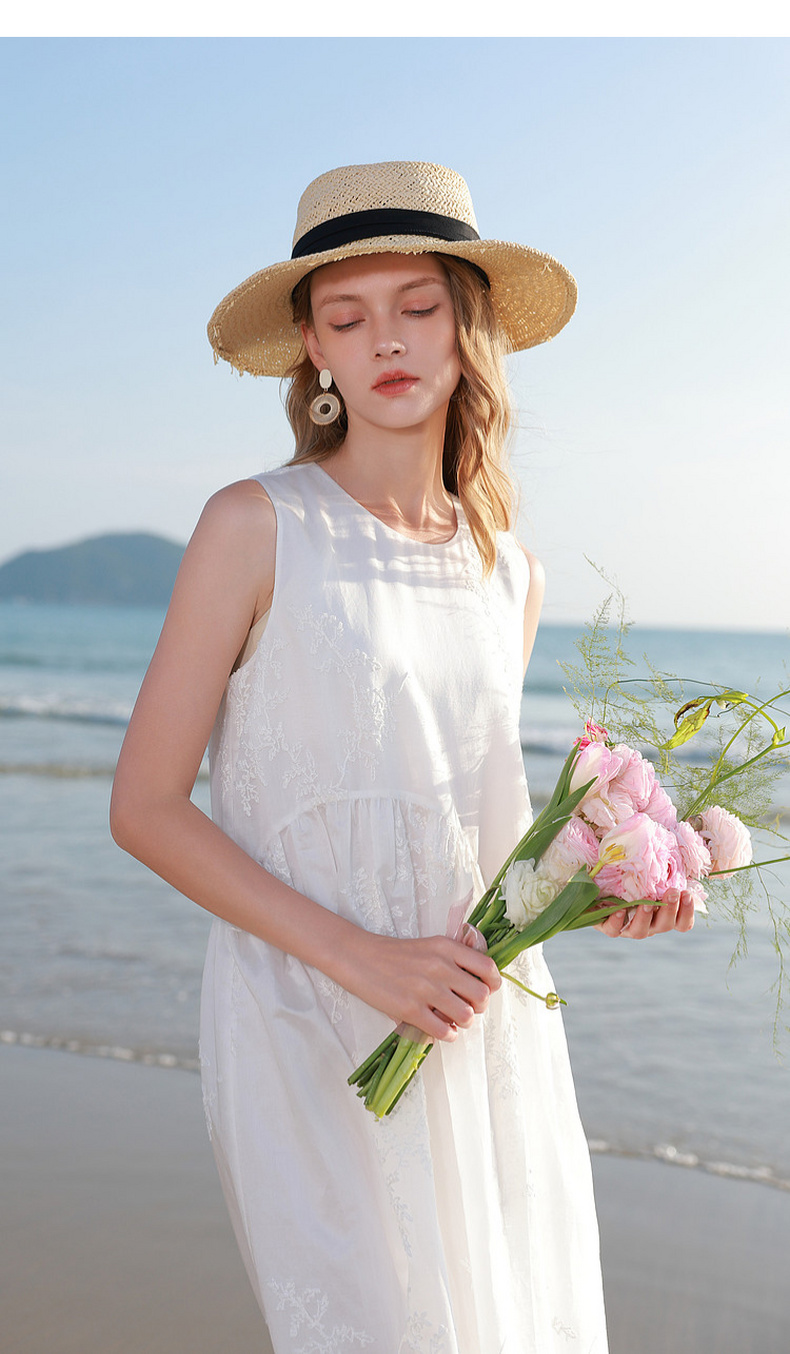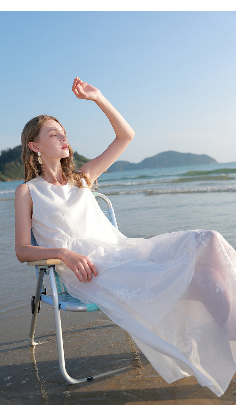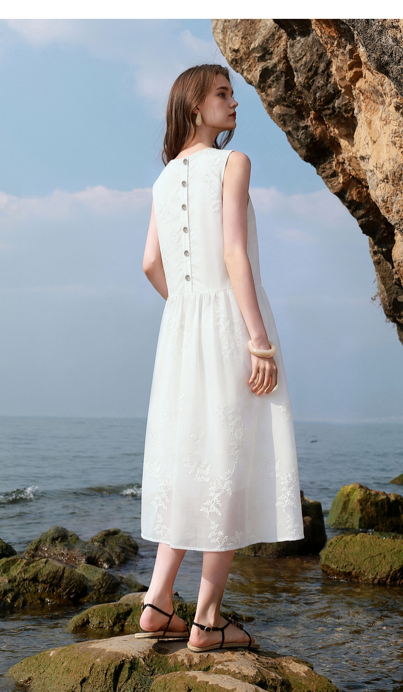 【莱赛尔】三彩2026夏季新款法式小白裙绣花连衣裙A字长裙M