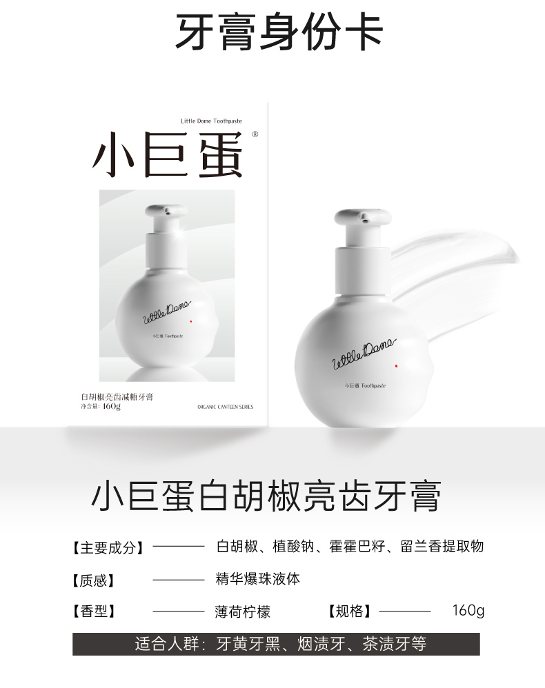 小巨蛋白胡椒亮齿减糖牙膏160g