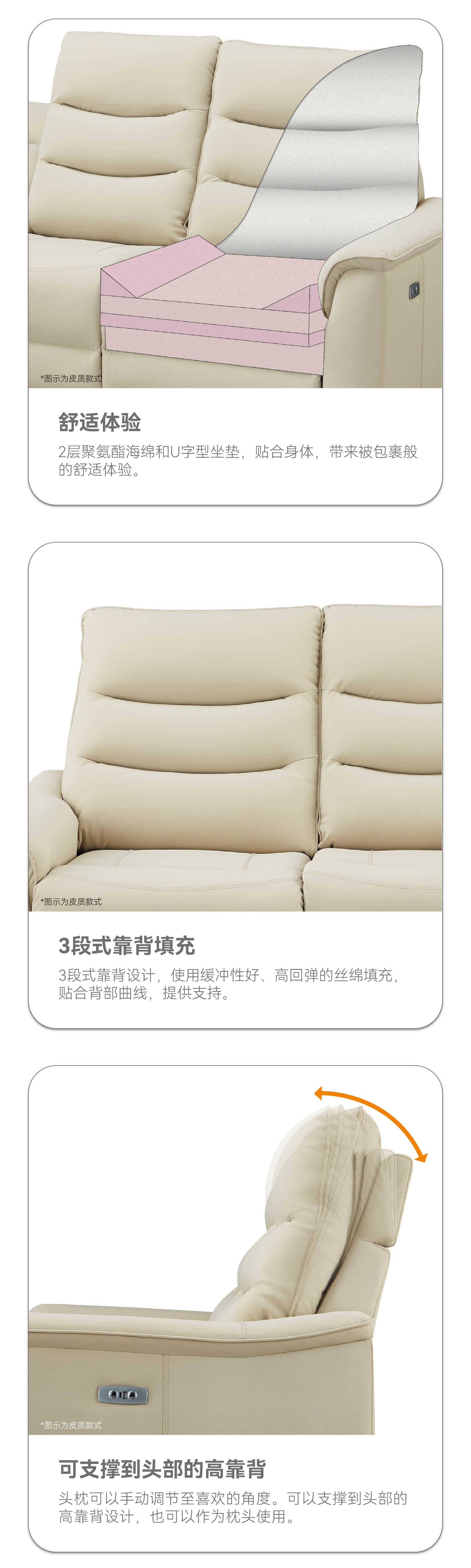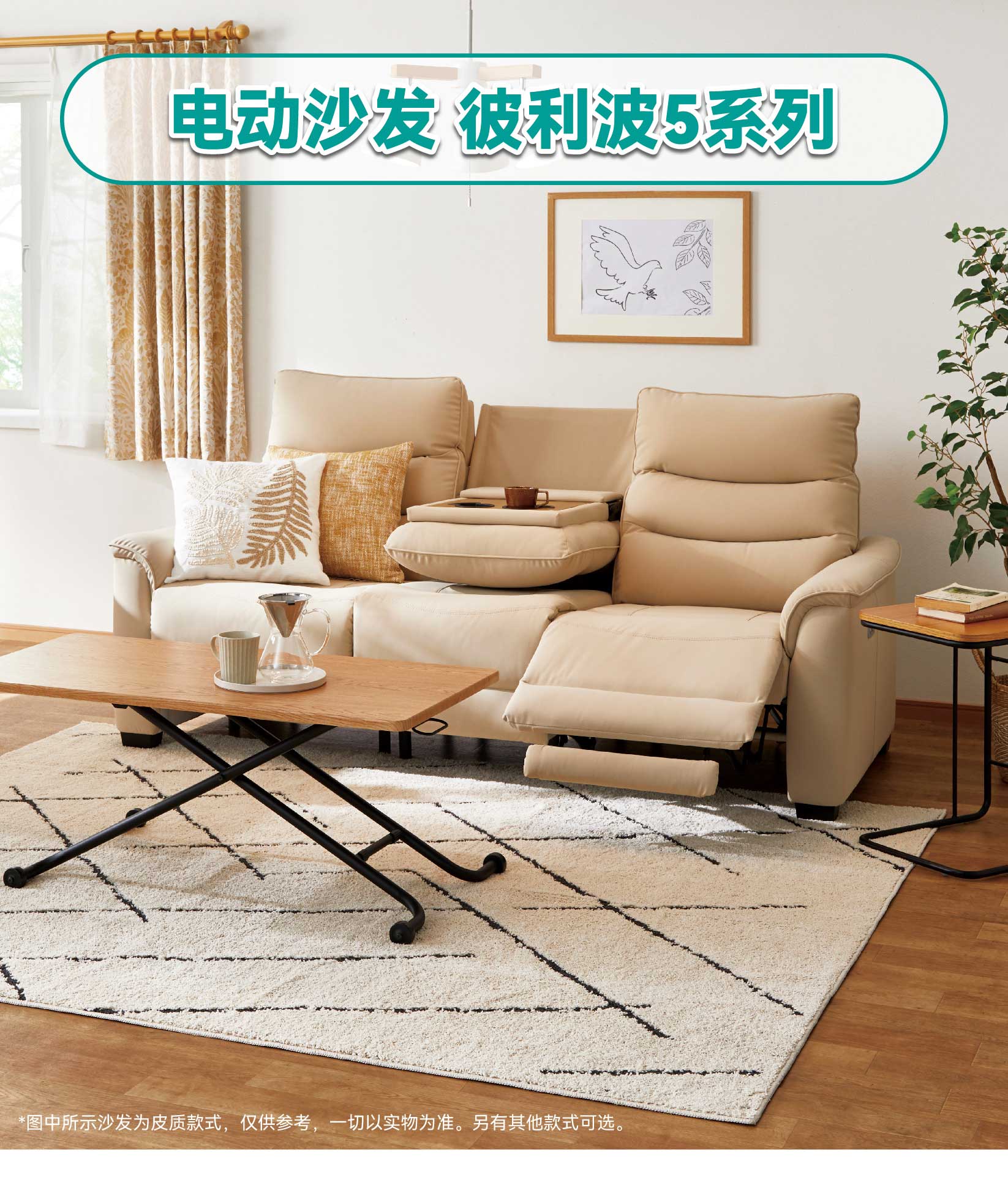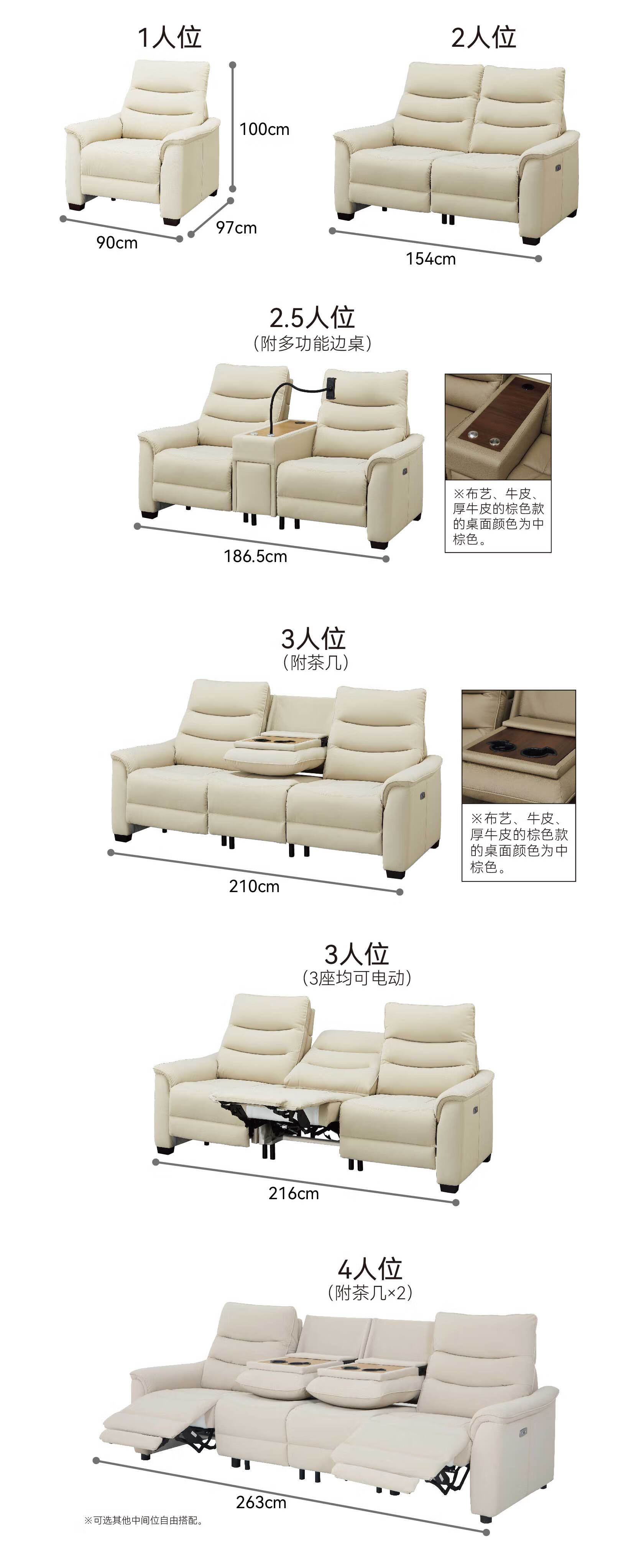 【家具】客厅电动真牛皮直排沙发电动沙发带茶几 彼利波5