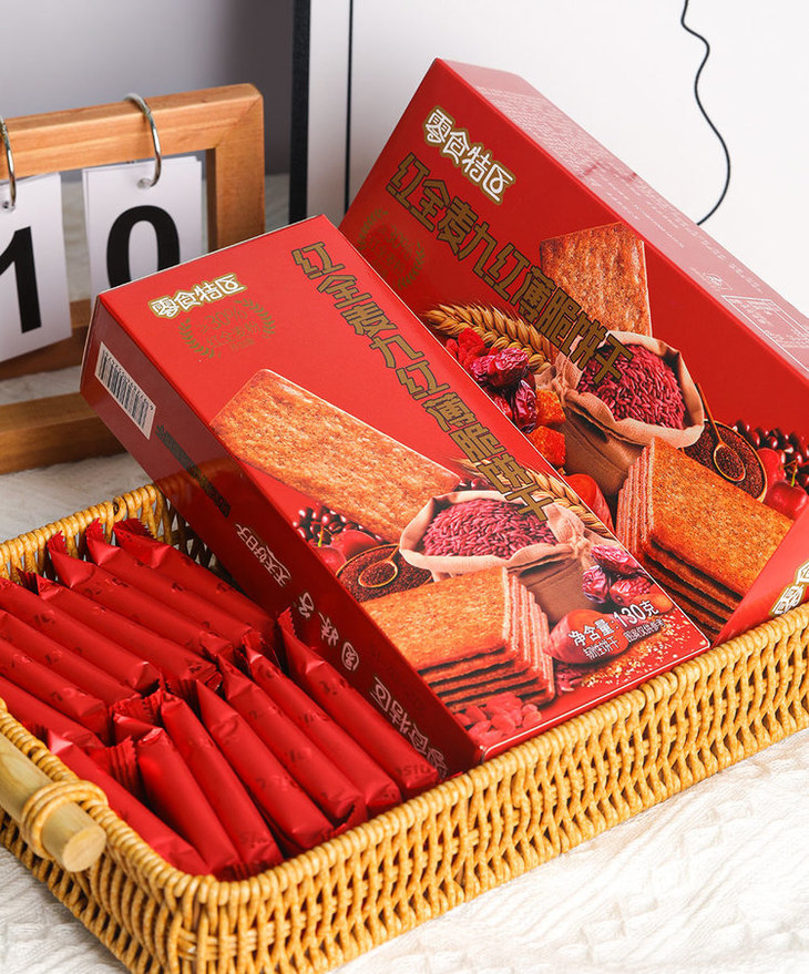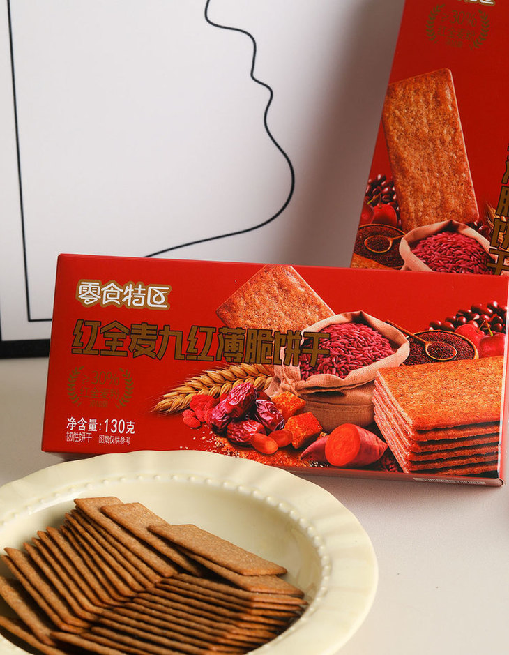 九红薄脆饼干,一口吃进9种红色营养!看得见的配料❗❗吃得到的安心❗❗1⃣【零食特区红全麦九红薄脆饼干】9红配方,古人养生智慧👉