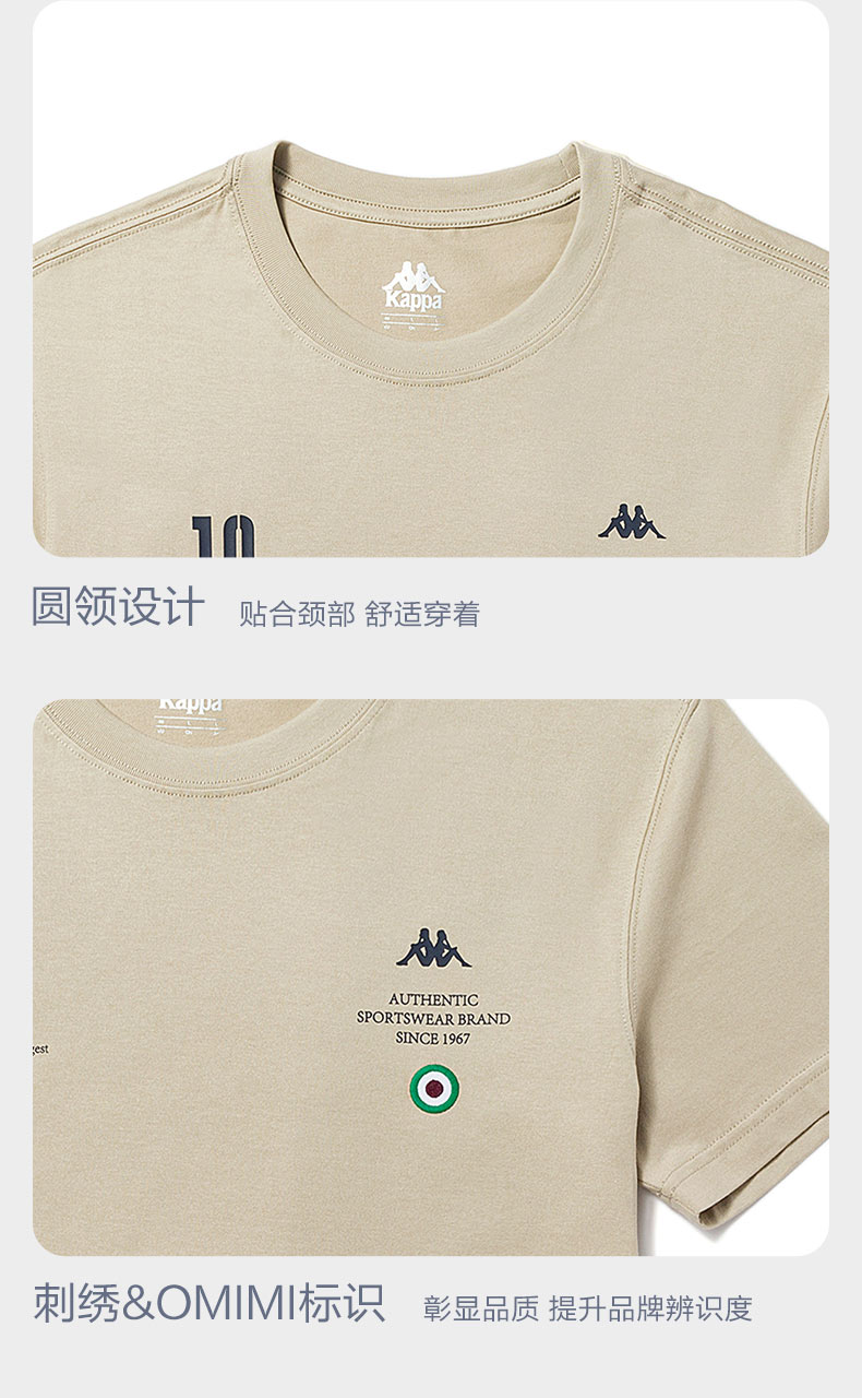 Kappa卡帕短袖复古运动2023新款男夏季刺绣印花半袖运动休闲T恤K0D32TD23