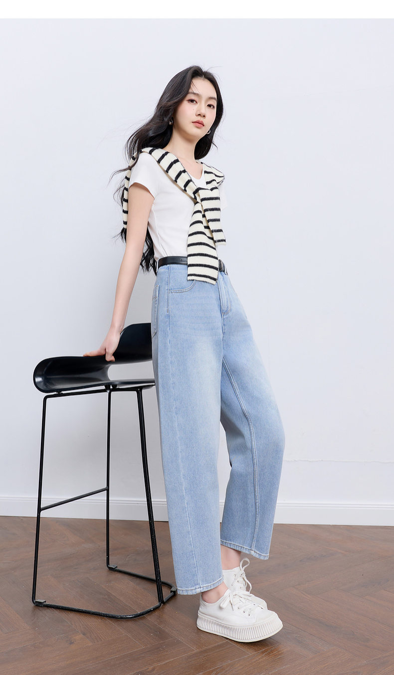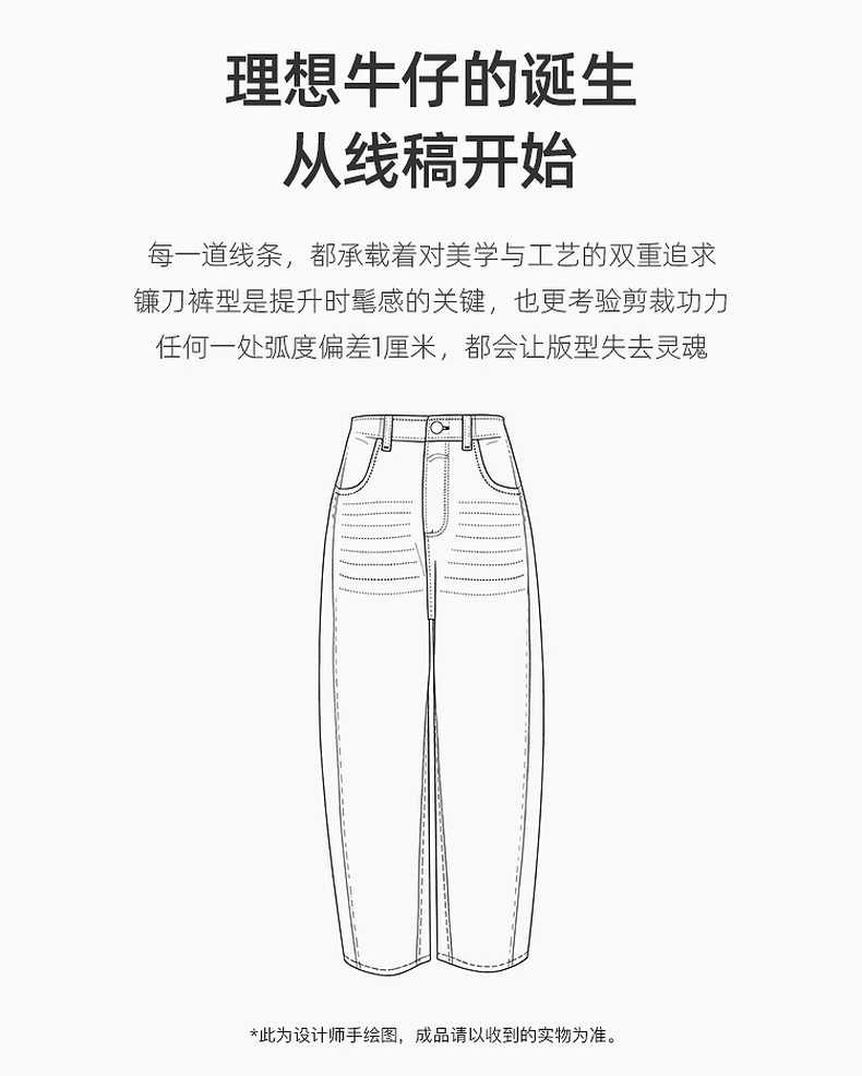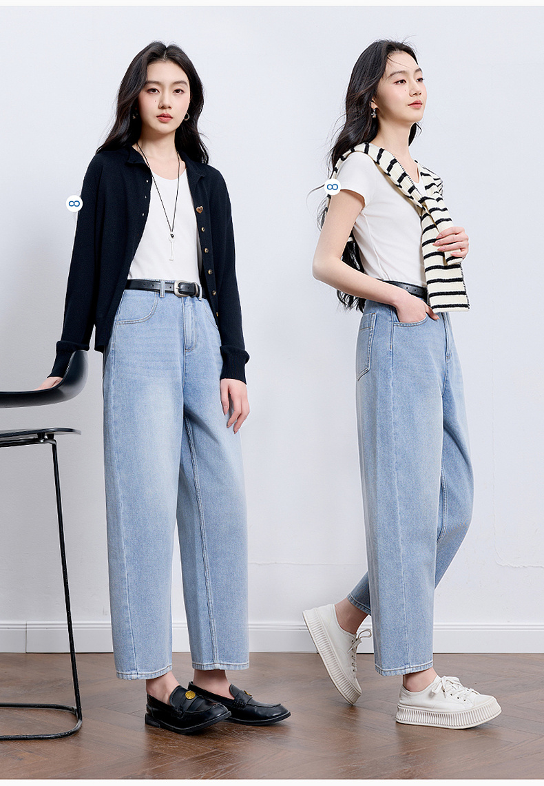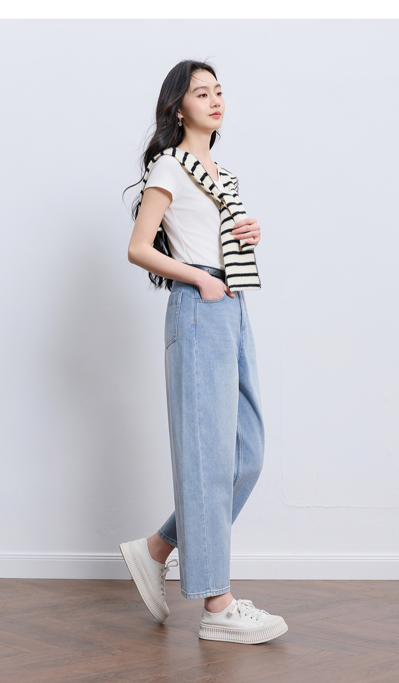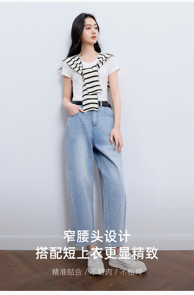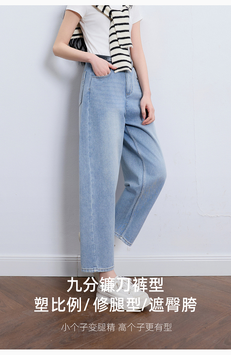 三彩2026春季新款休闲牛仔裤高腰宽松镰刀裤九分裤时尚M