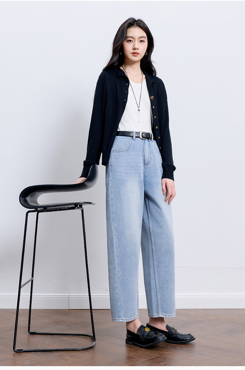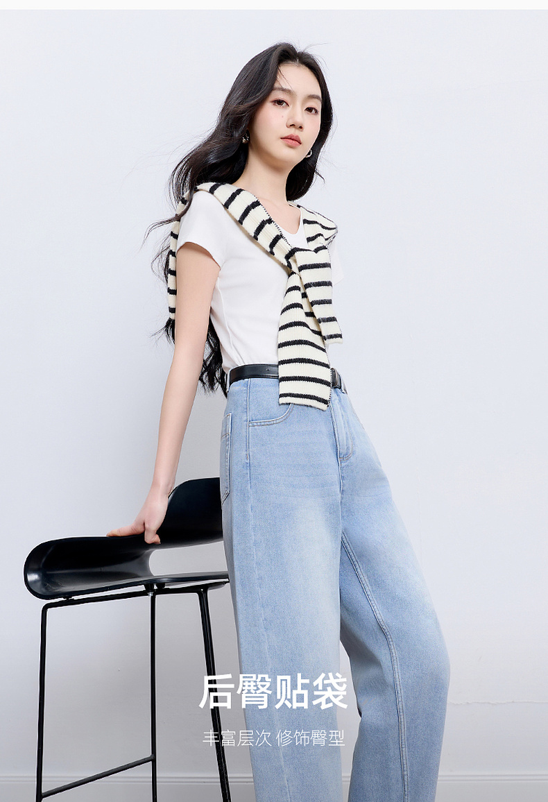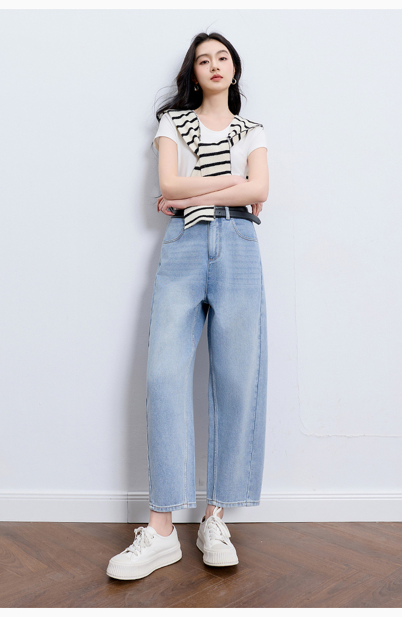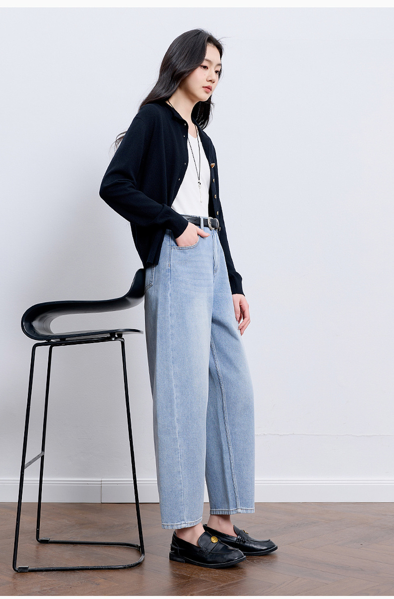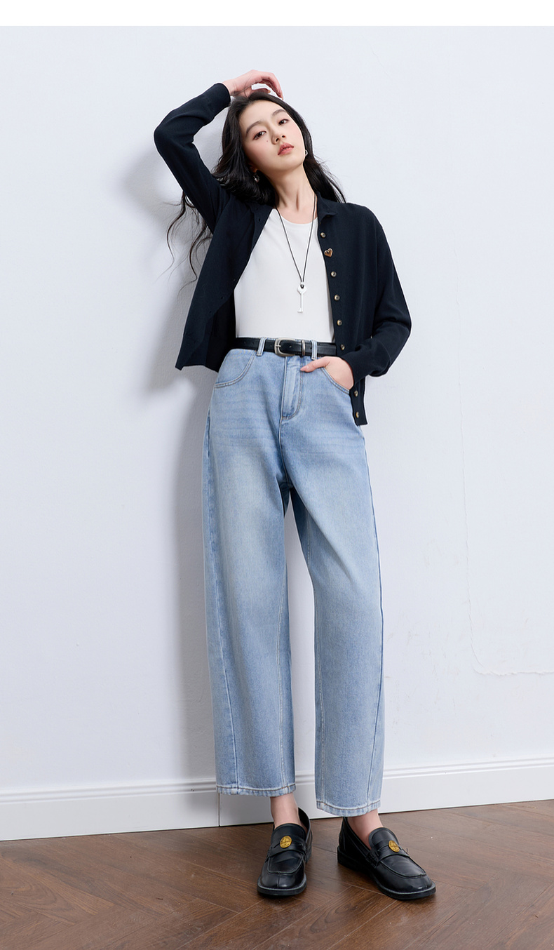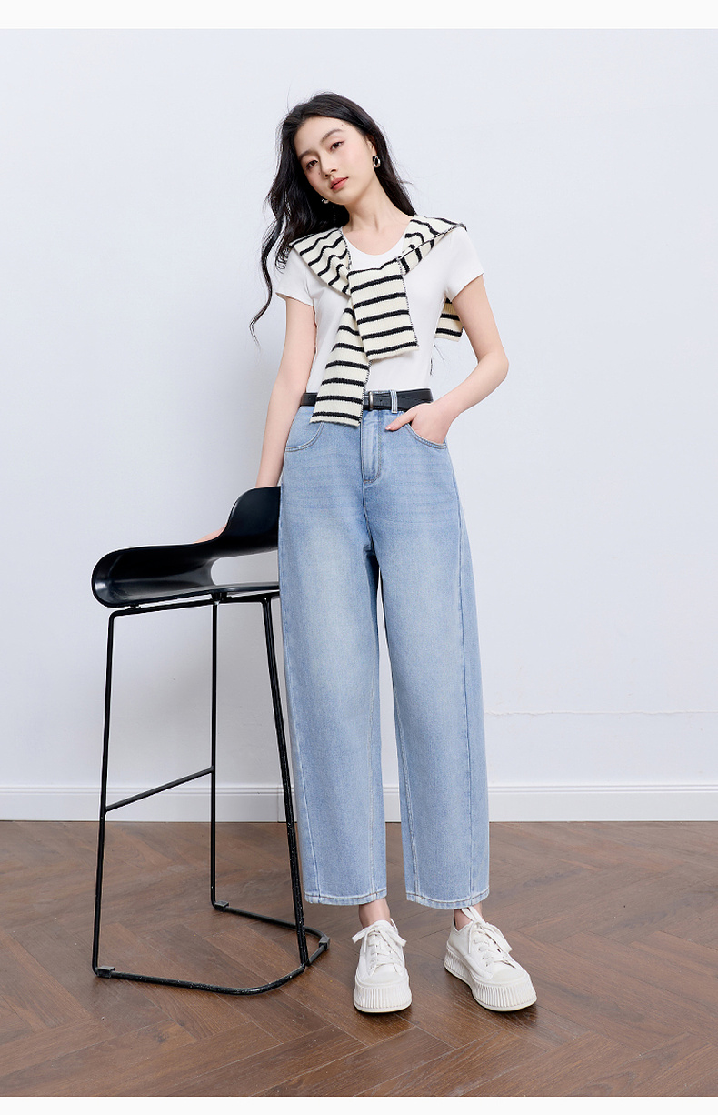 三彩2026春季新款休闲牛仔裤高腰宽松镰刀裤九分裤时尚M