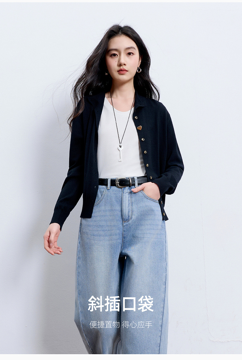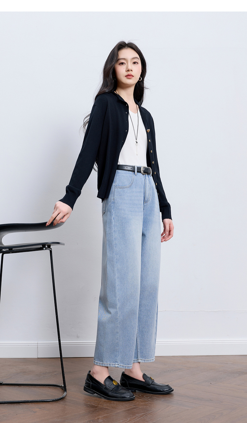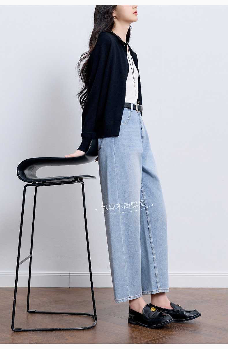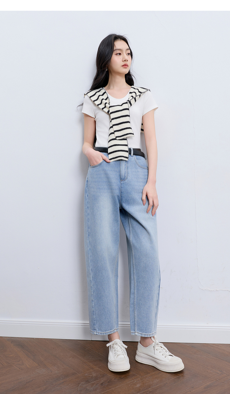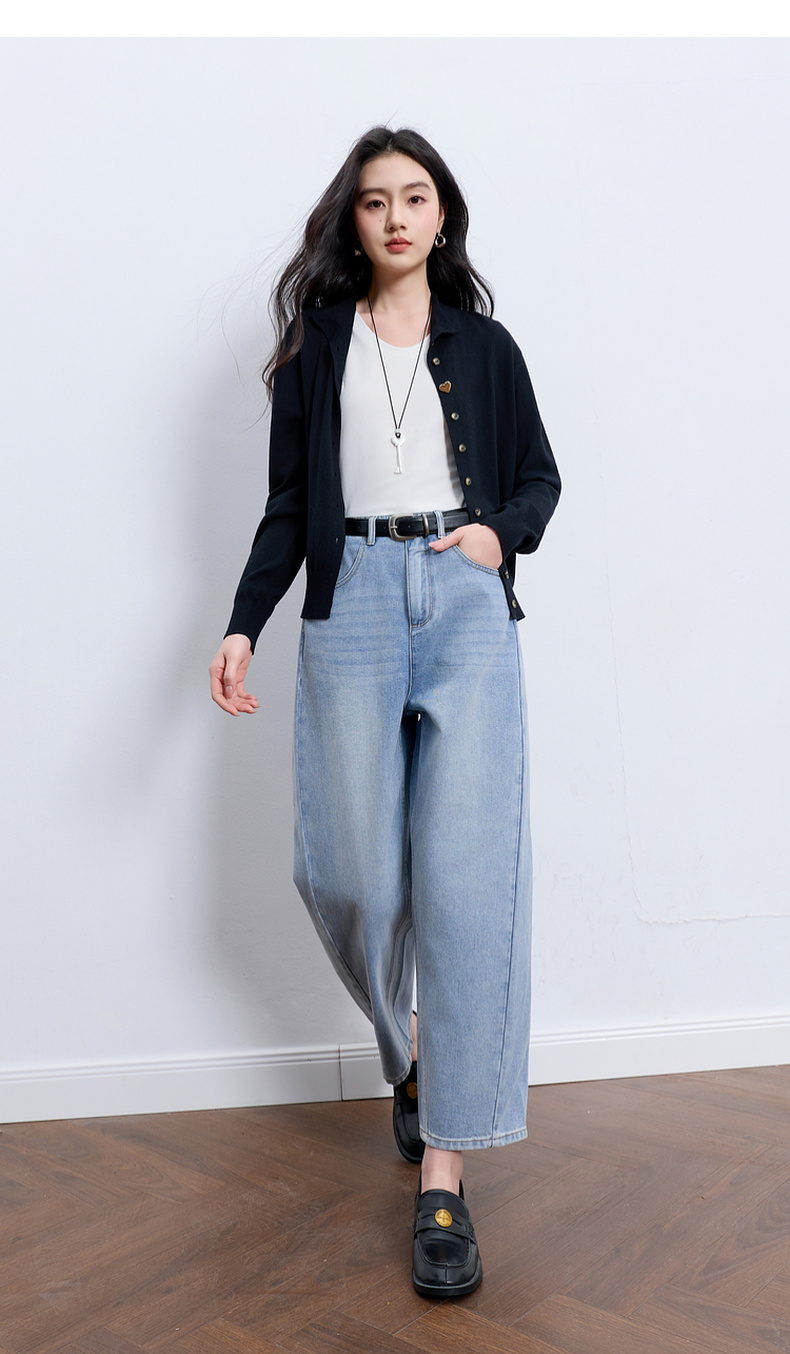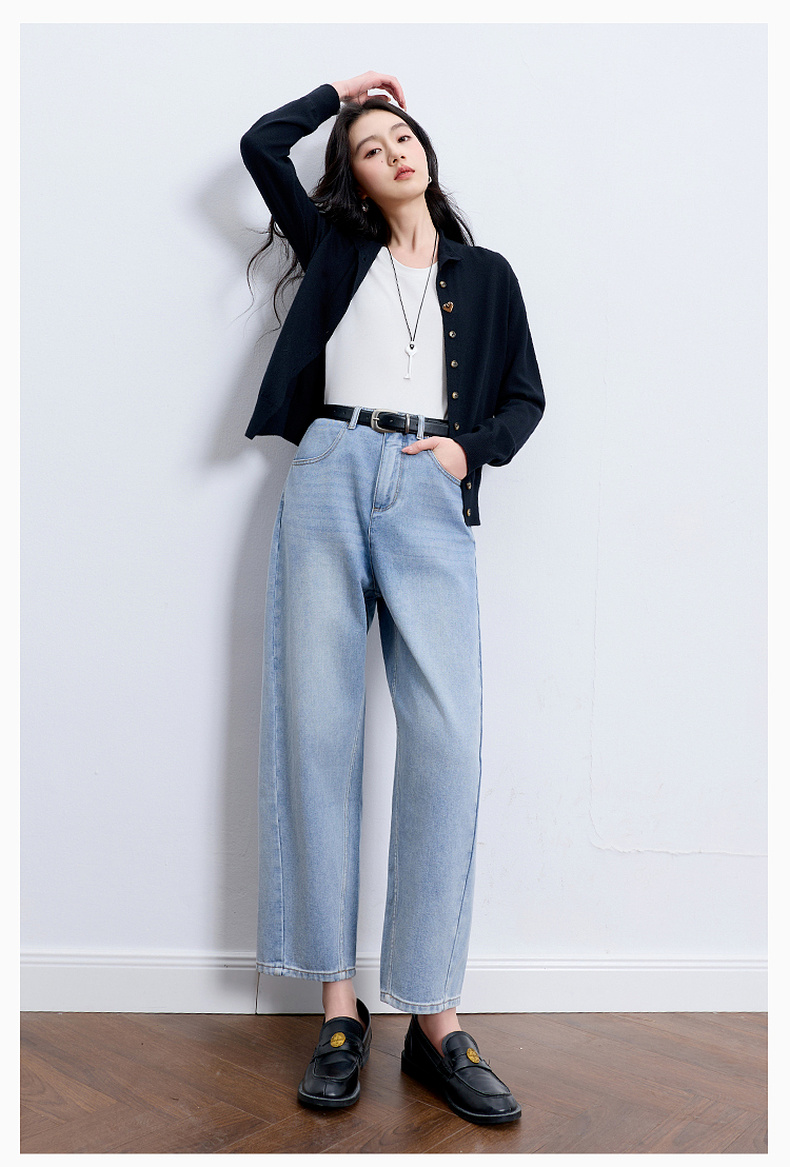 三彩2026春季新款休闲牛仔裤高腰宽松镰刀裤九分裤时尚M