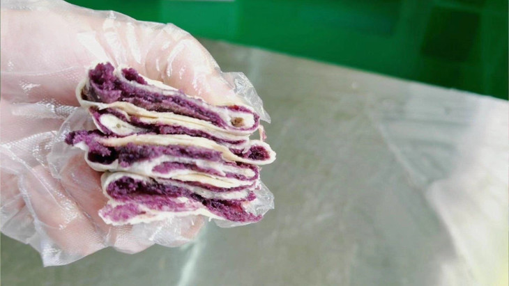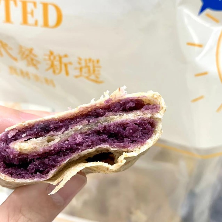 来个掰开的内馅实拍, 真材“实”料看得见, 内馅非常饱满,咬下去,一整口满满都是馅儿, 清甜的紫薯味和浓郁的芋泥香相结合, 口感绵绵密密, 词穷,就是超好吃啦!