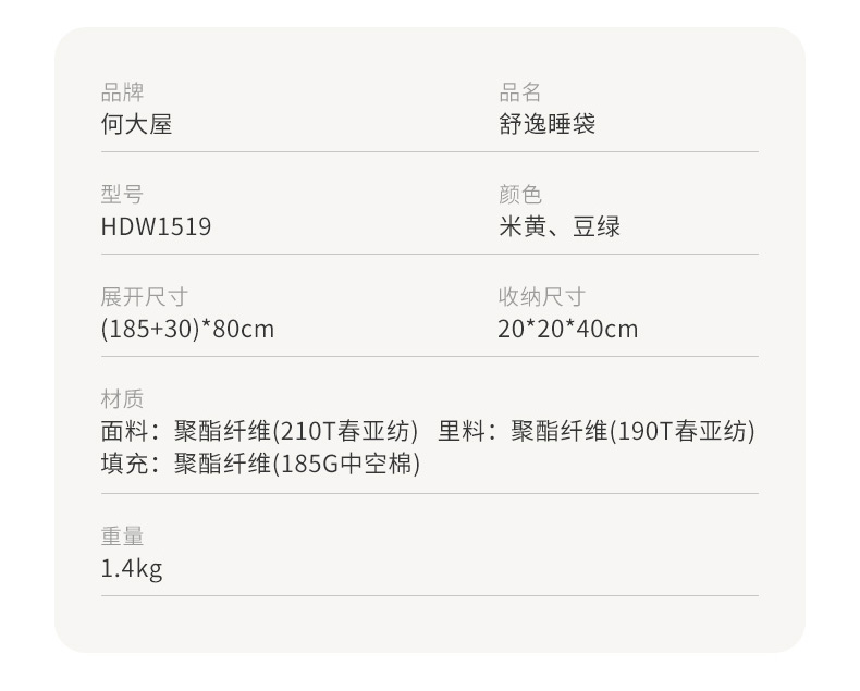 Hodtown何大屋舒逸睡袋 米黄/豆绿HDW1519—rxs