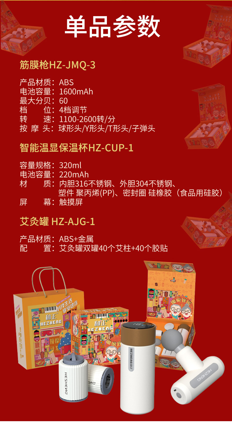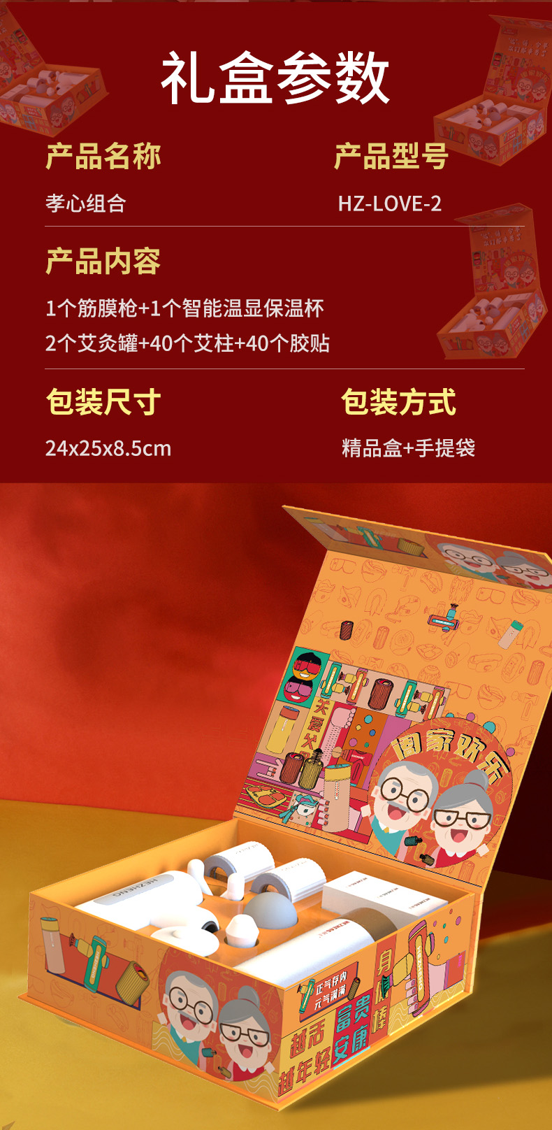 和正 孝心礼盒送长辈爱心礼盒HZ-LOVE-2(筋膜枪+智能温显杯+艾灸罐*2)