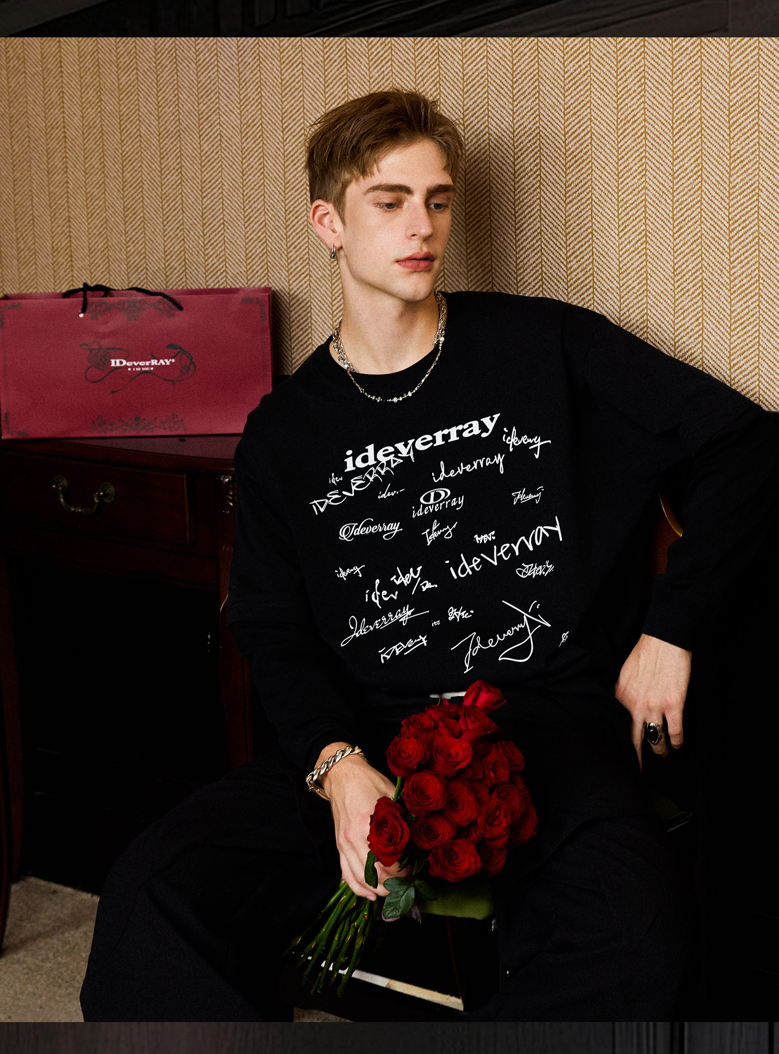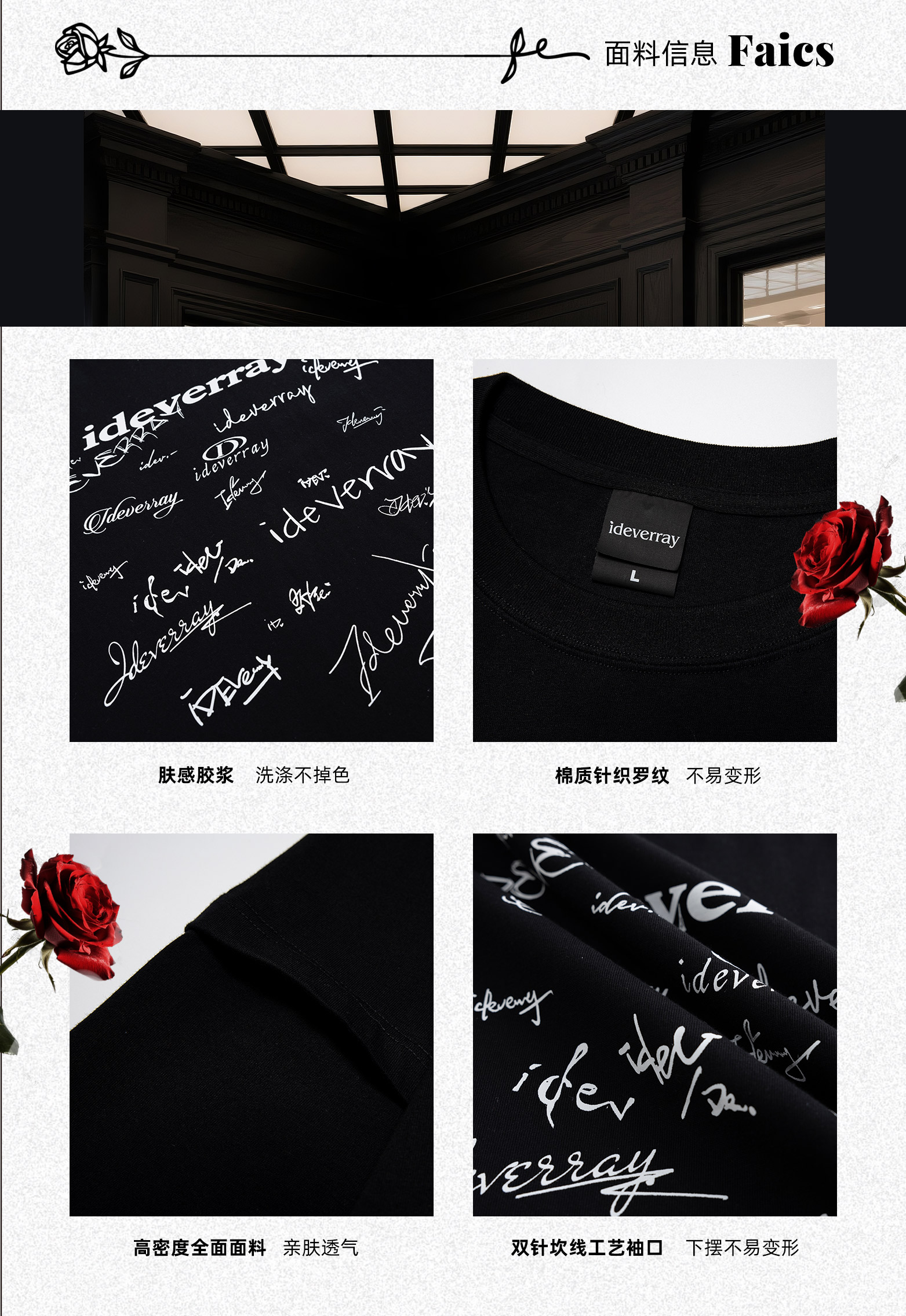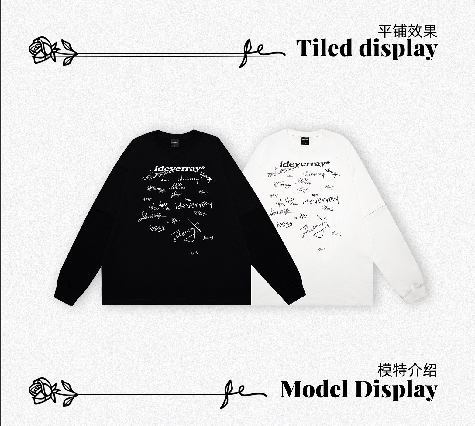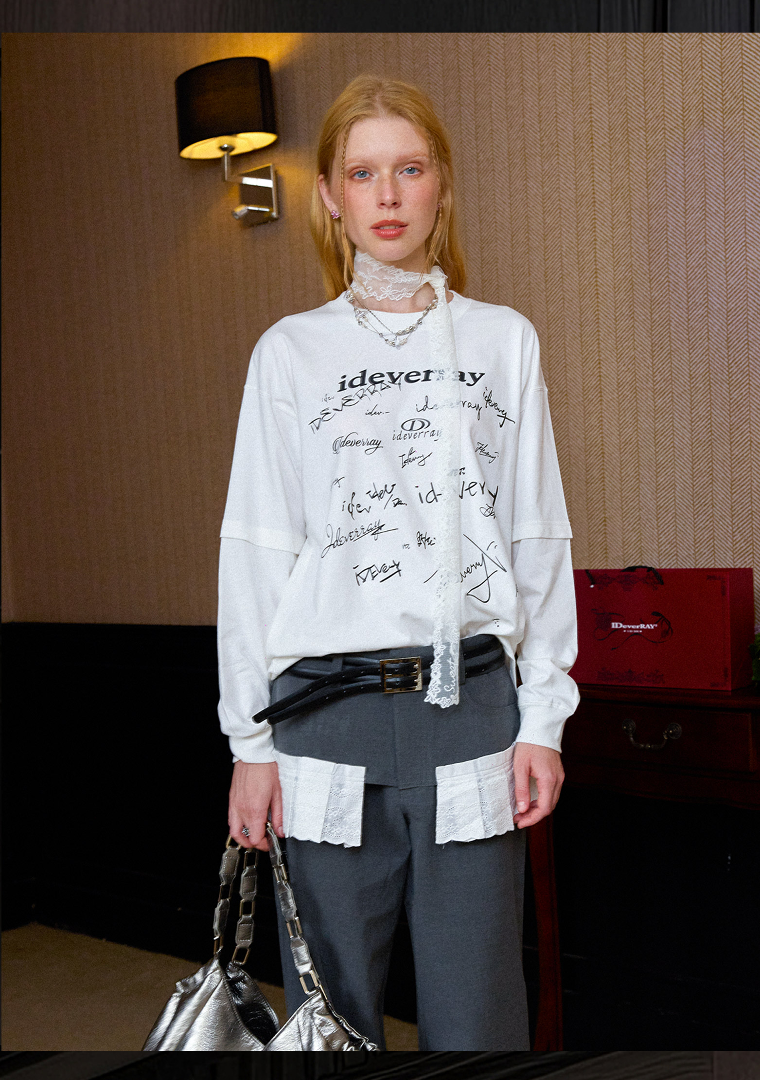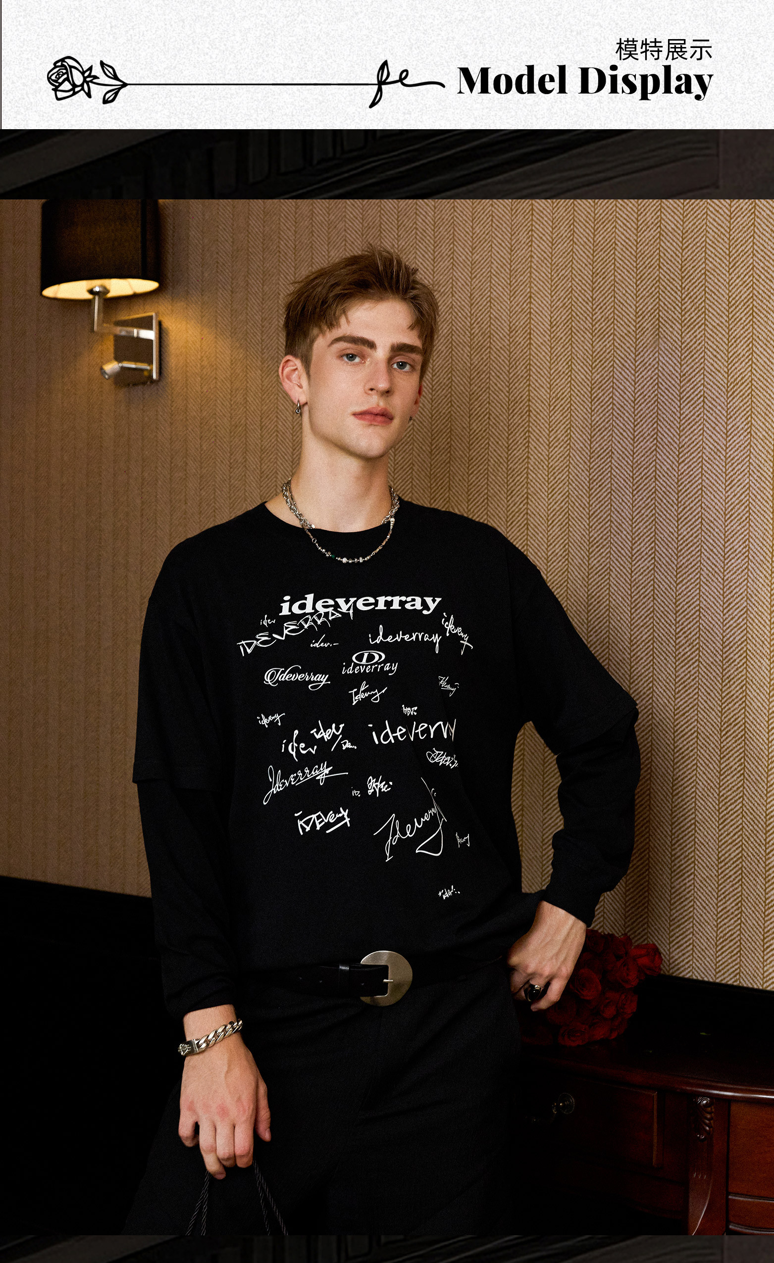 【明星同款】IDEVERRAY设计感字母印花长袖T恤男女同款早秋新品假两件圆领上衣