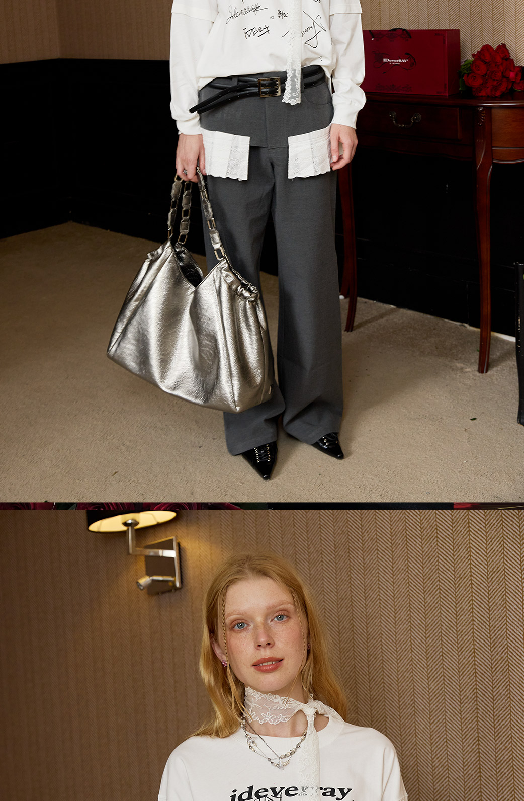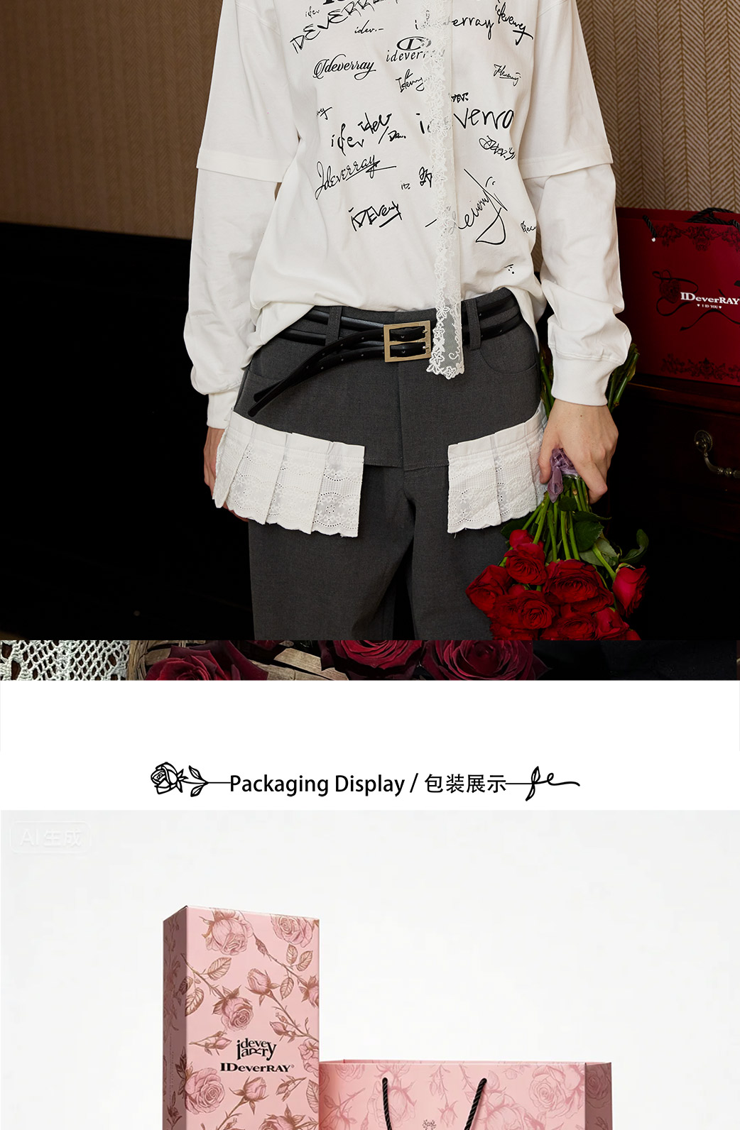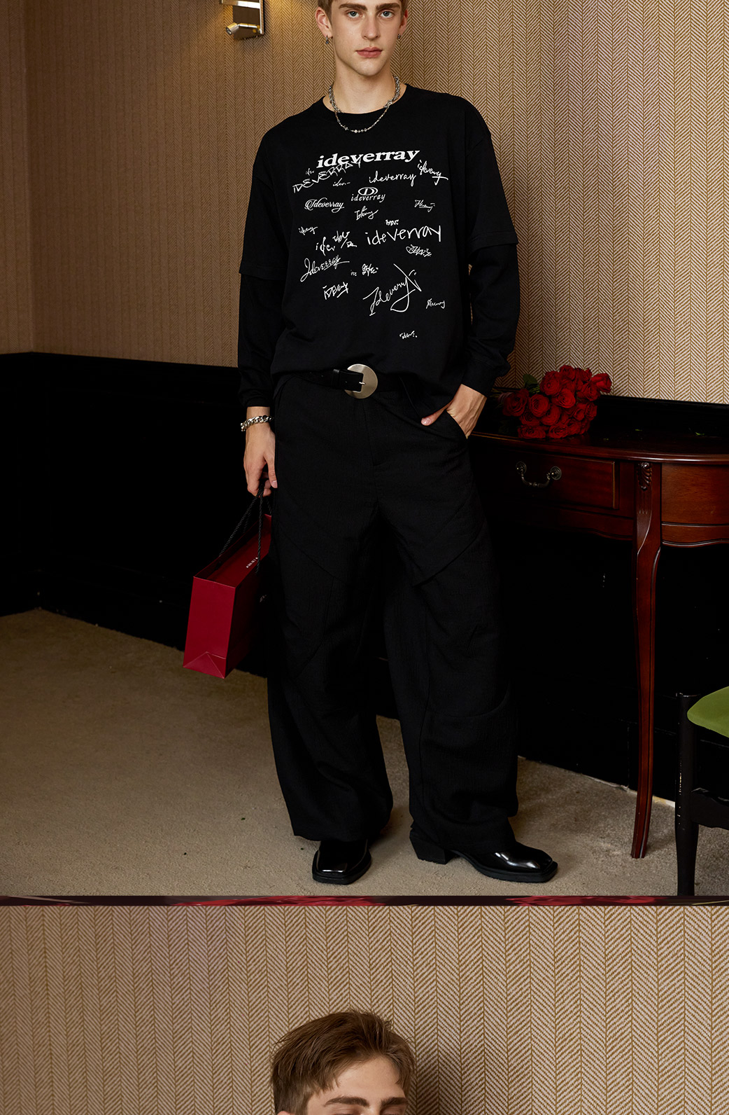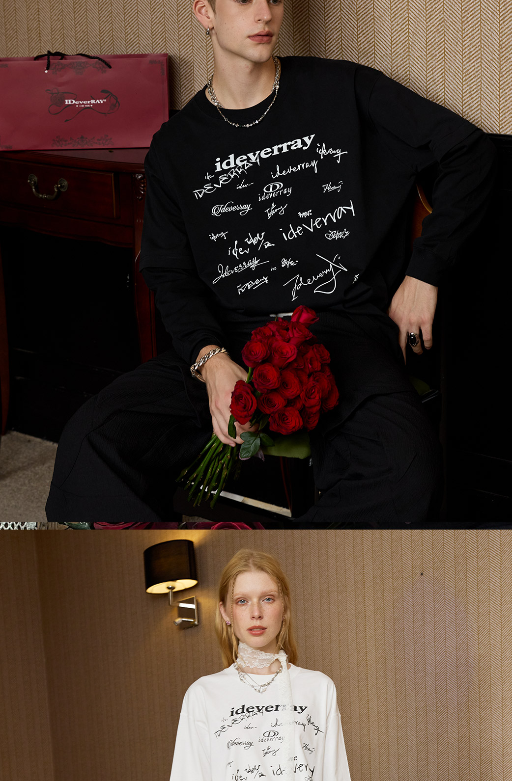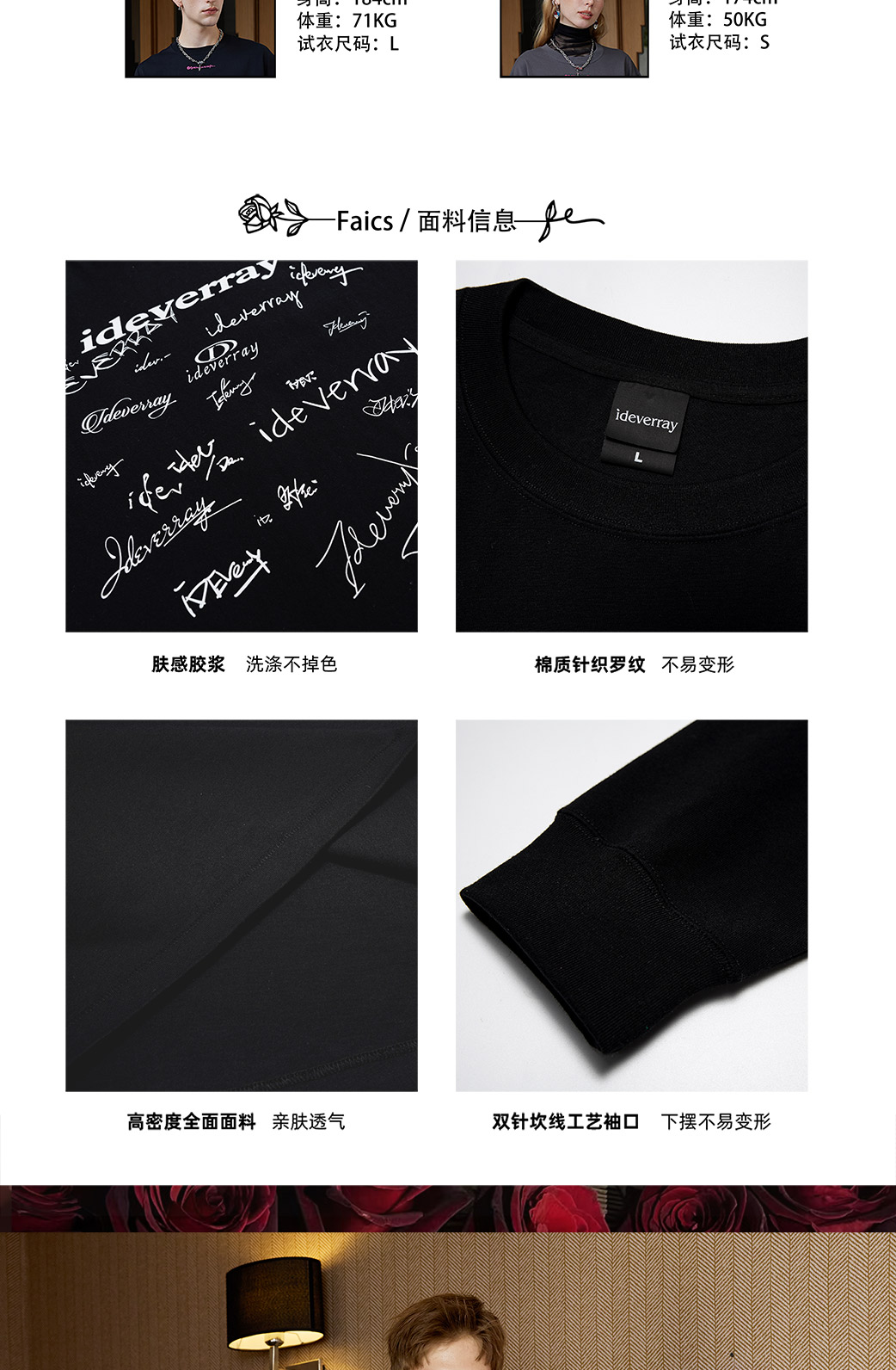 【明星同款】IDEVERRAY设计感字母印花长袖T恤男女同款早秋新品假两件圆领上衣23CX-TM1255