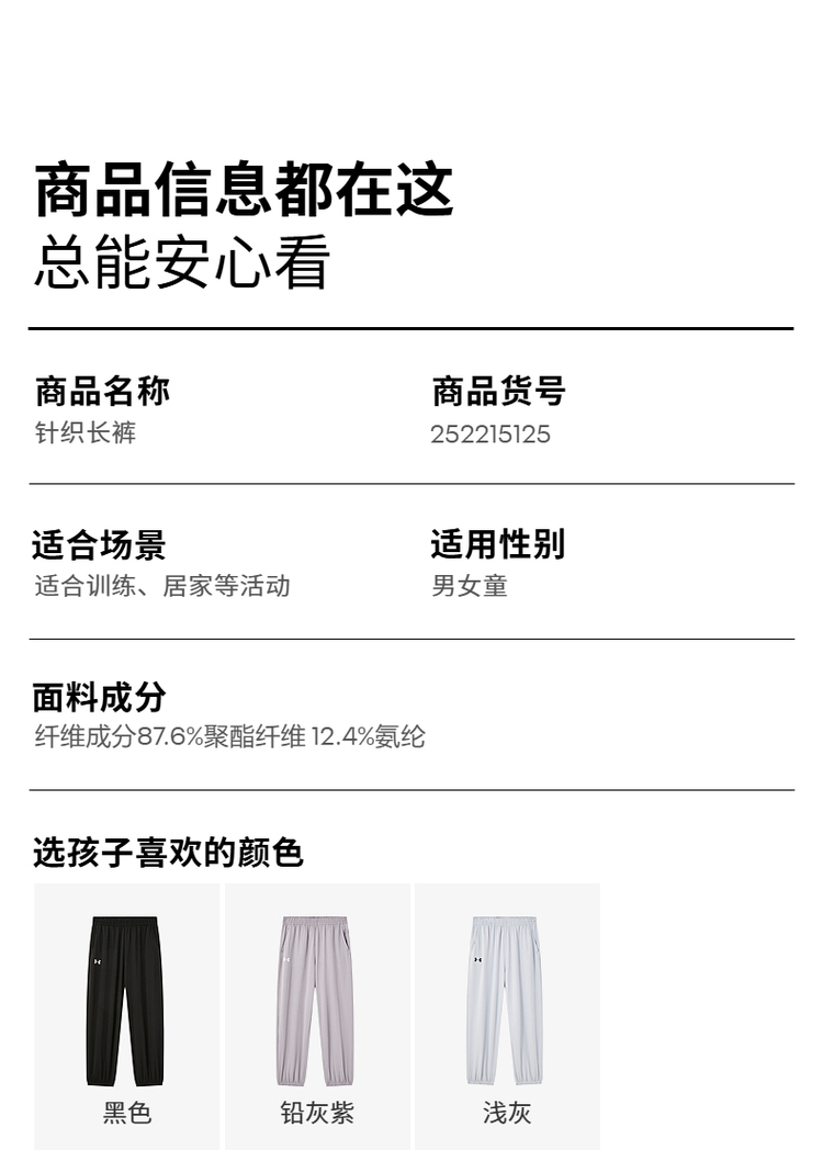 【12月-特惠福利】 正品Under Armour安德玛儿童针织长裤252215125