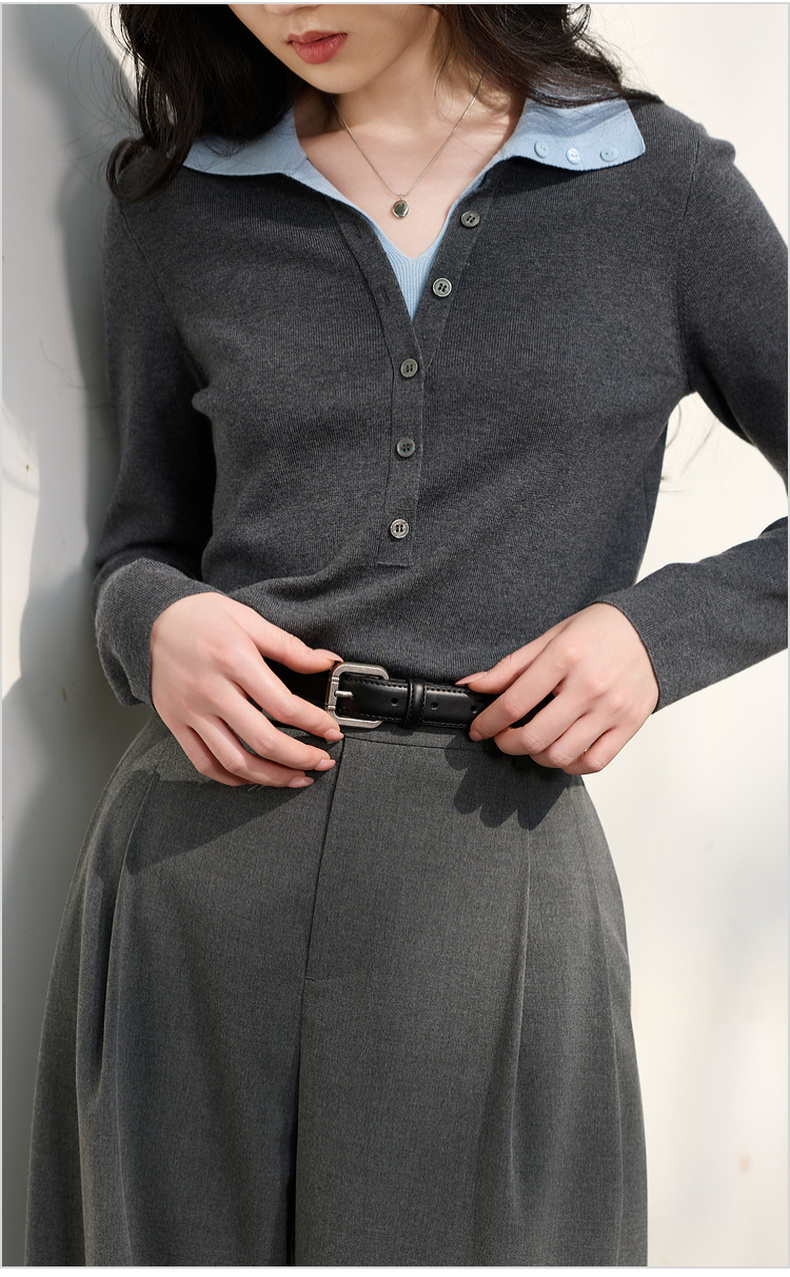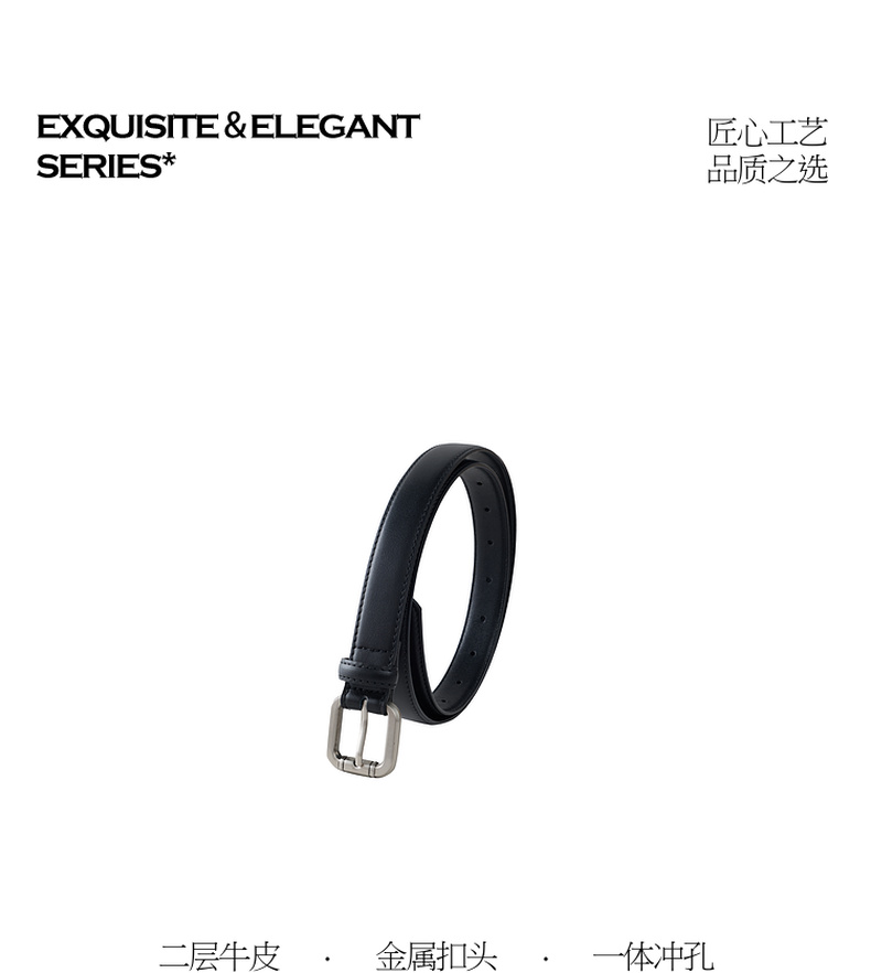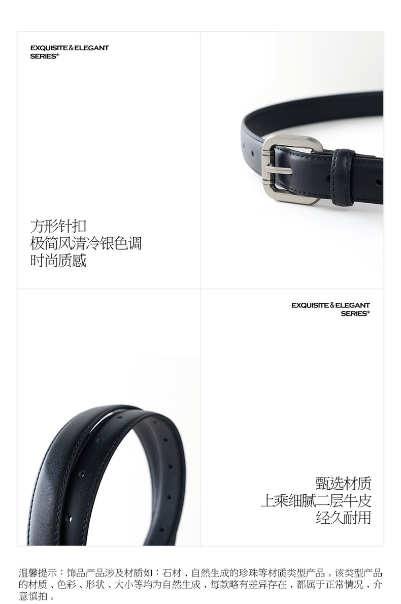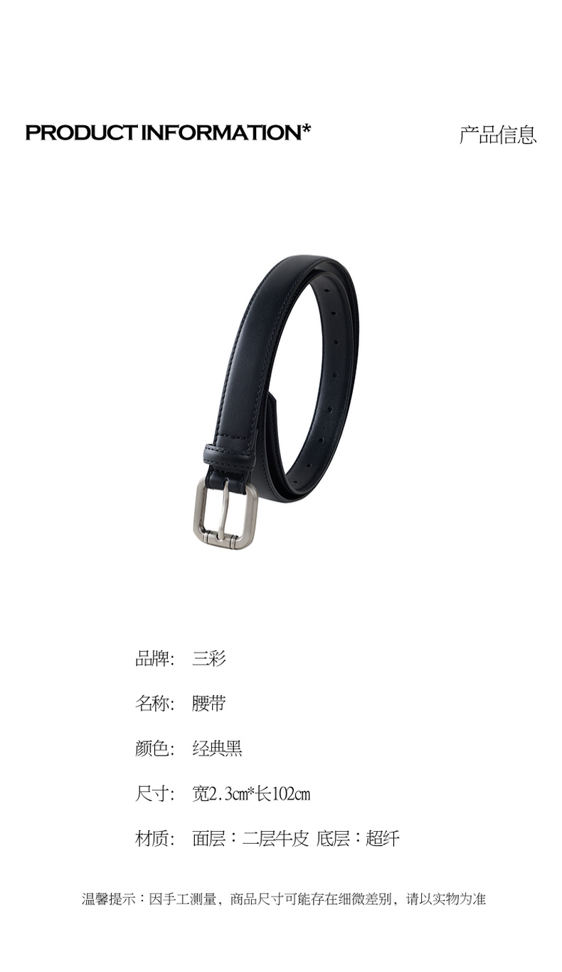 三彩2026新款极简风银色方形针扣皮质腰带二层牛皮百搭通勤干练女