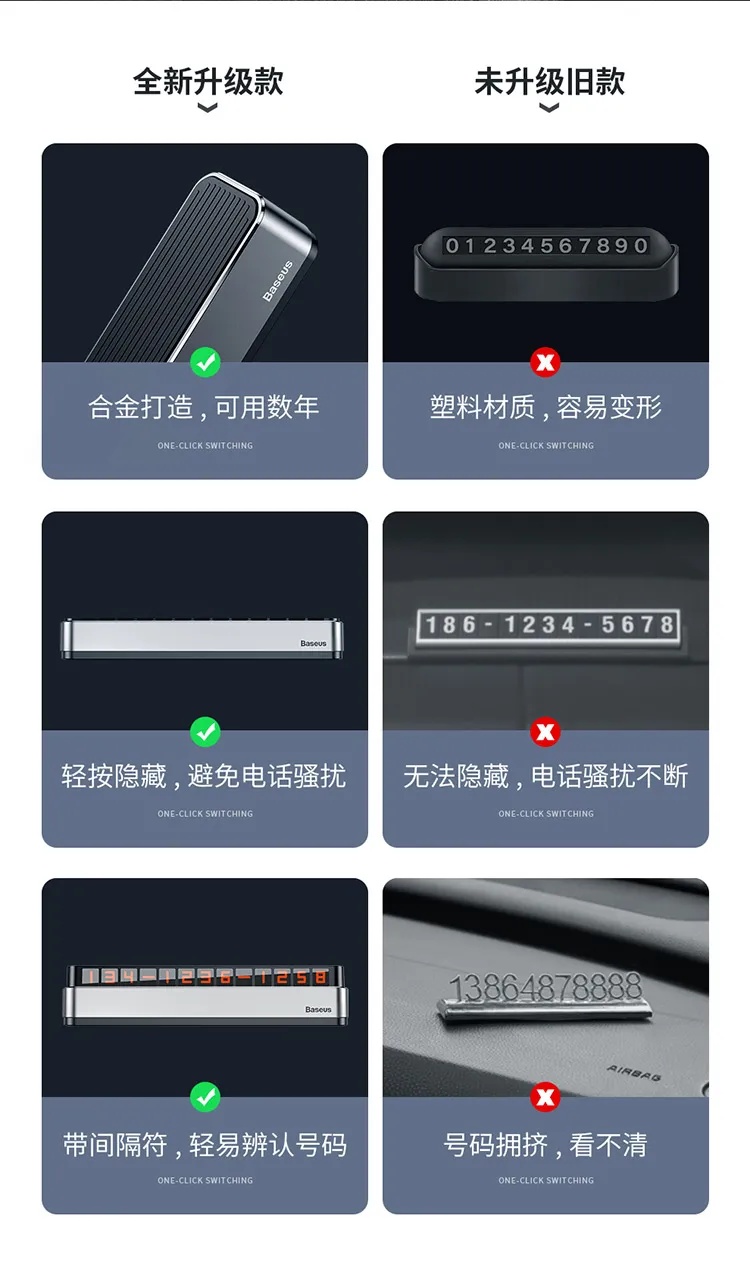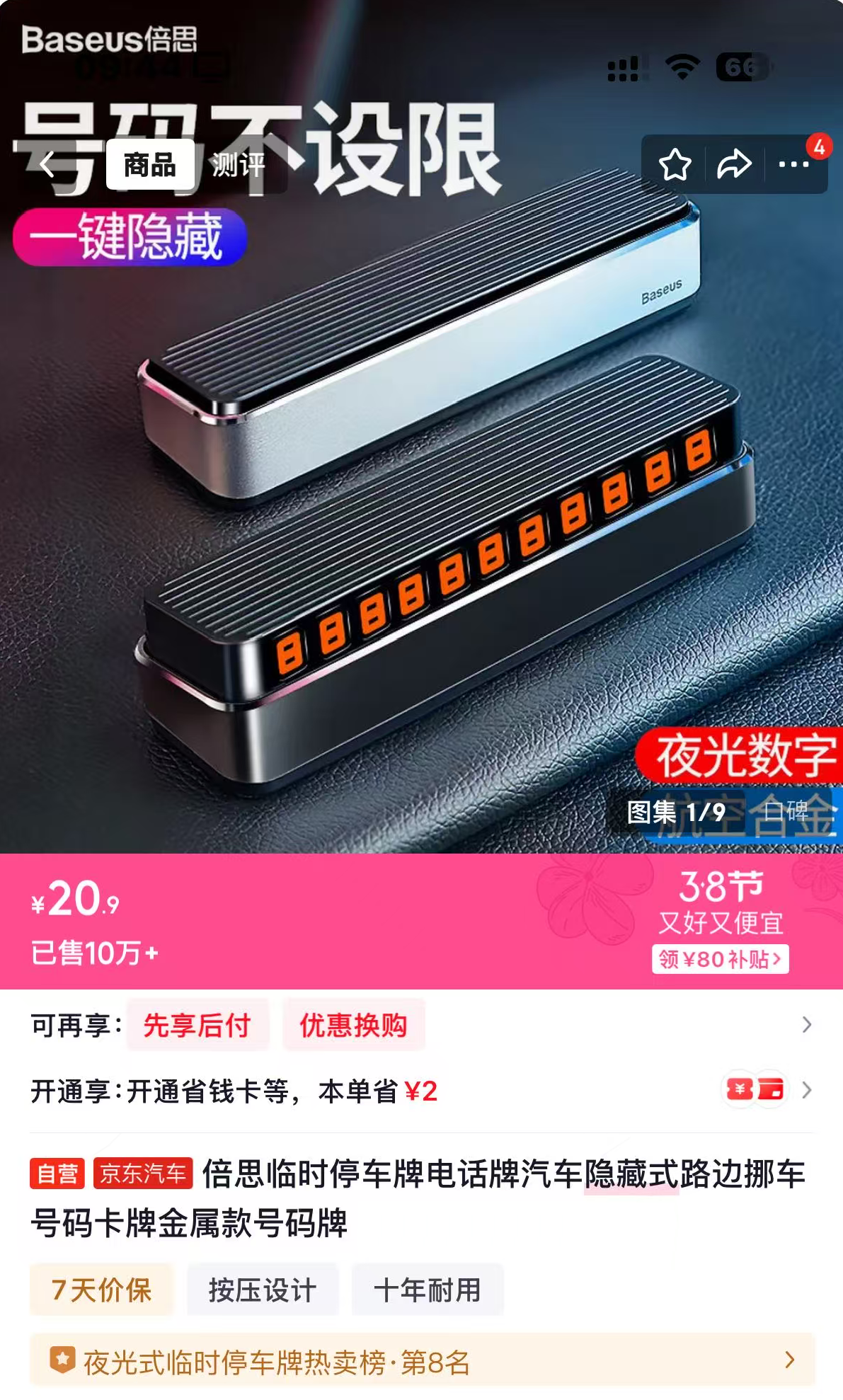 【京东热卖10W+】倍思 ACNUM-B0S 月光宝盒临时停车号码牌 隐藏式移车挪车电话牌