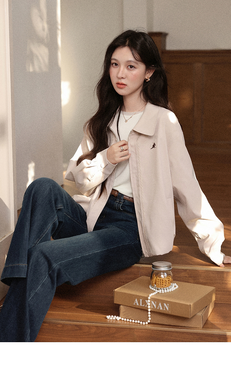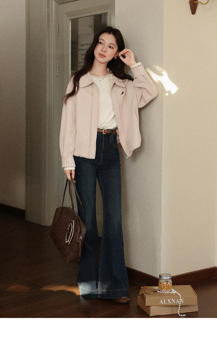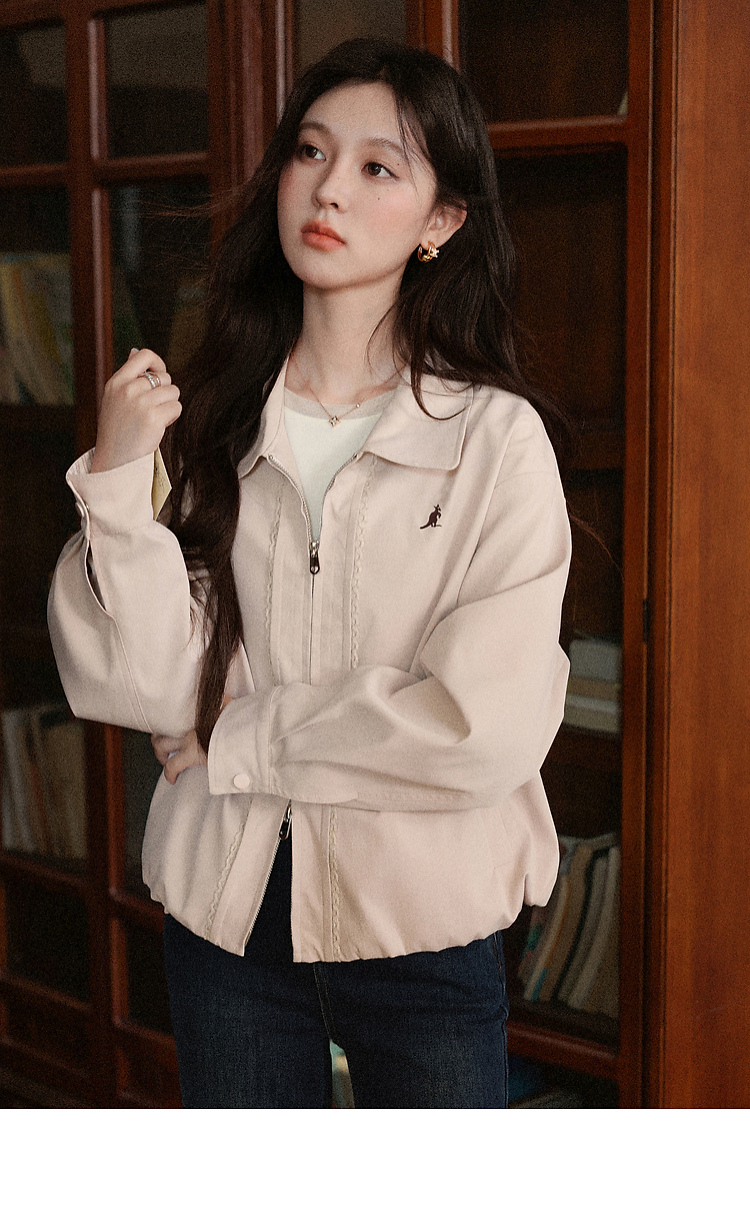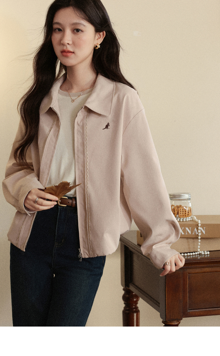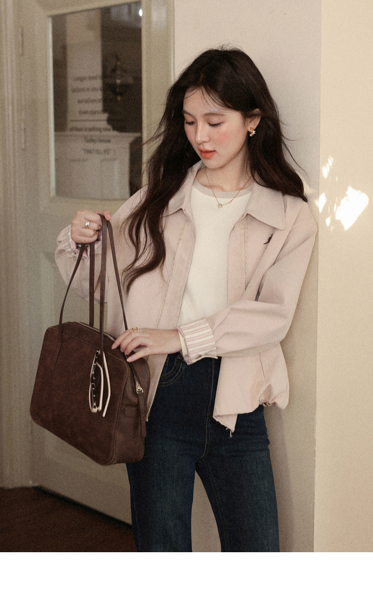 鹿向南「粉雾秋街」温柔减龄粉色短外套女2025秋季新款小个子夹克