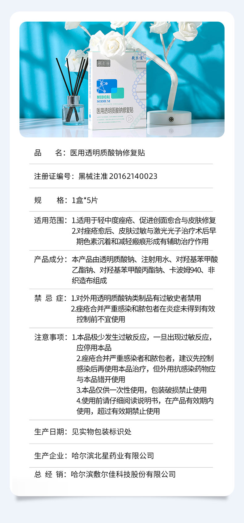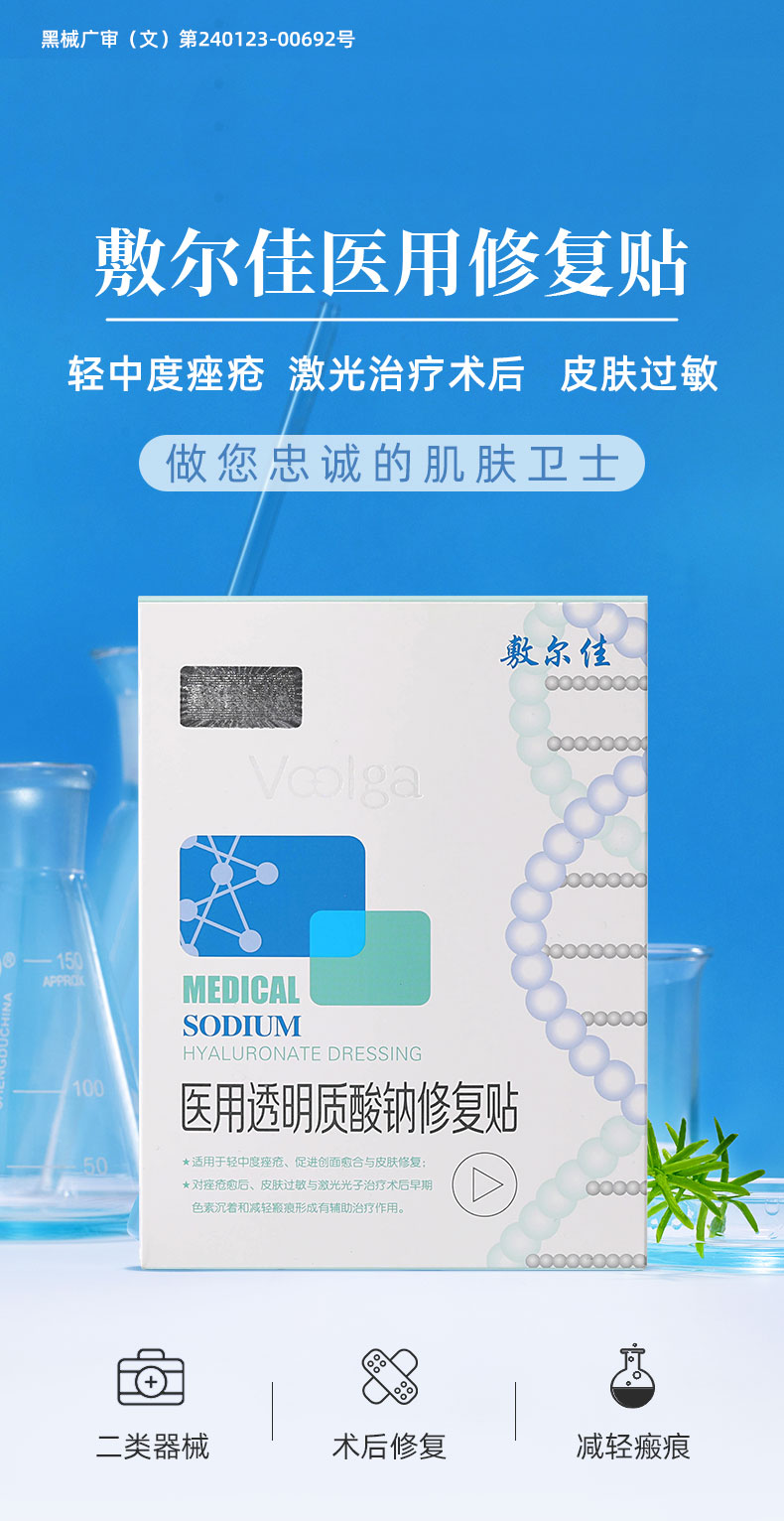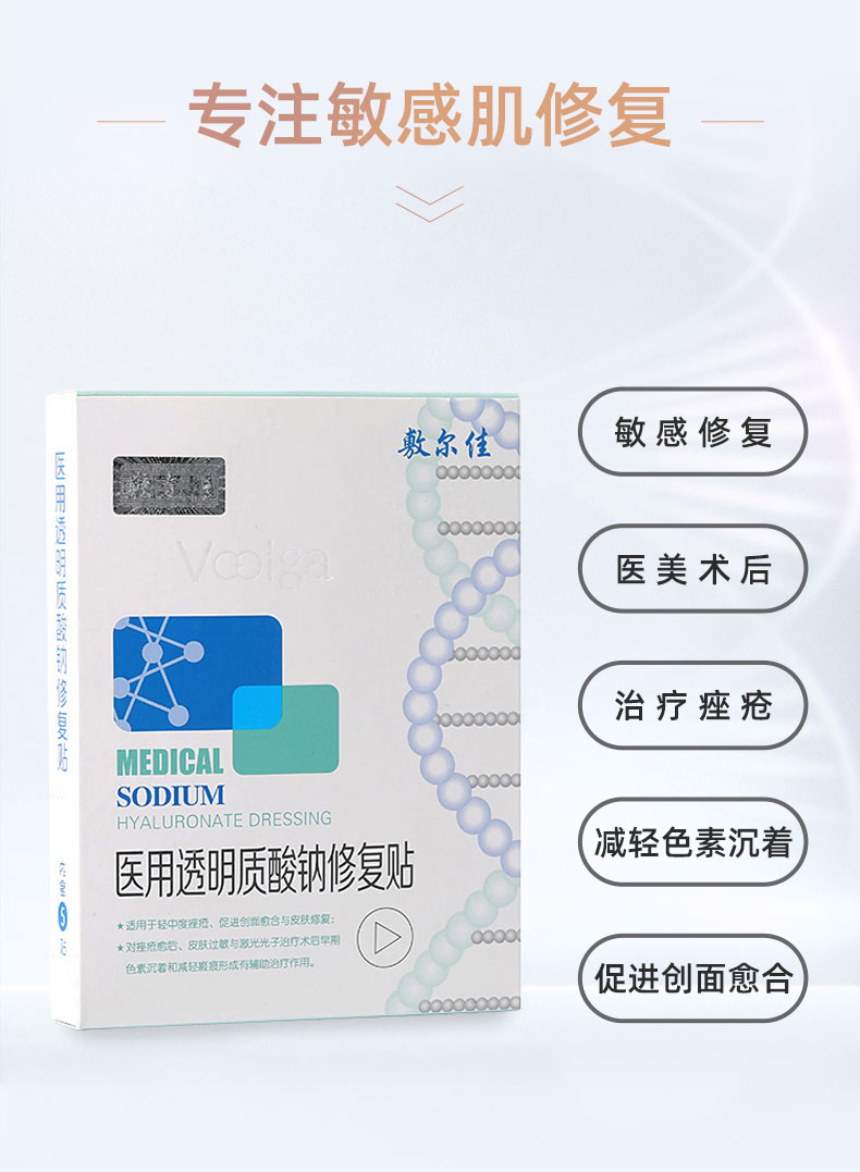 敷尔佳医用透明质酸钠修护贴5片/盒(白膜)