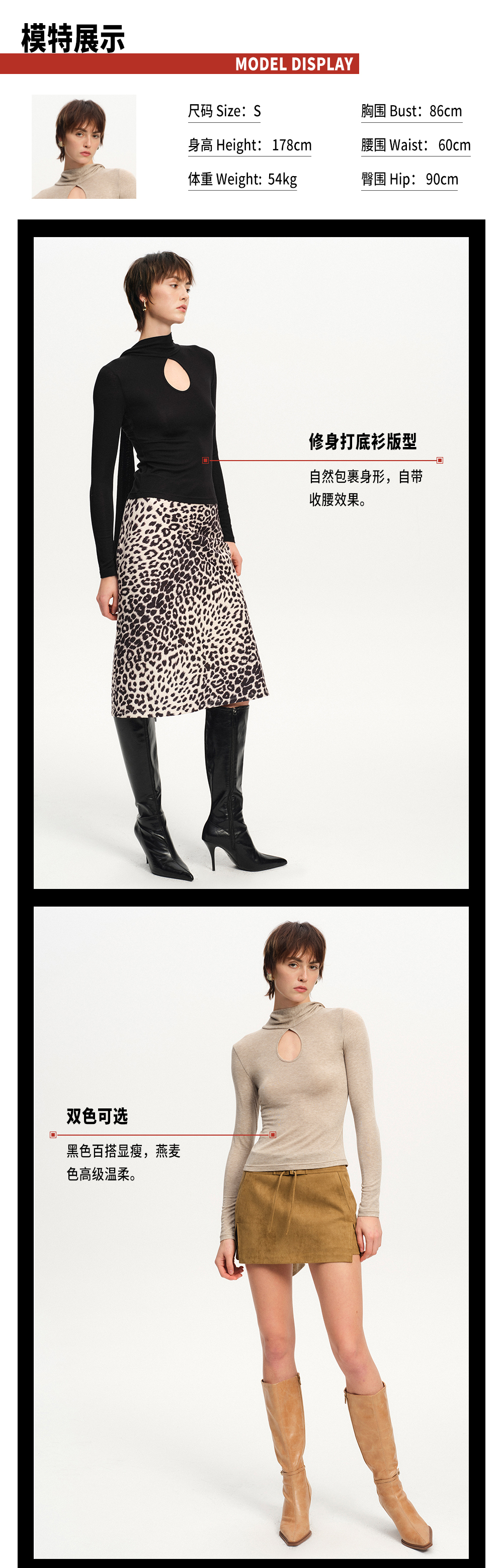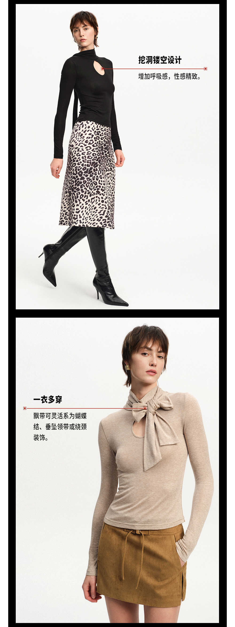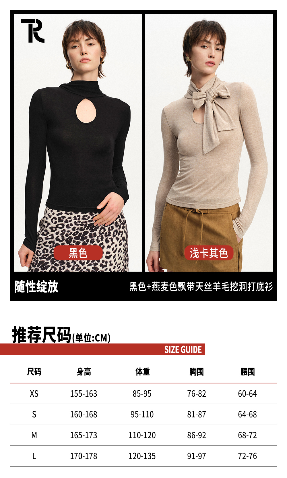 TR她热 随性绽放 黑色燕麦色飘带天丝羊毛复古显瘦镂空打底衫上衣