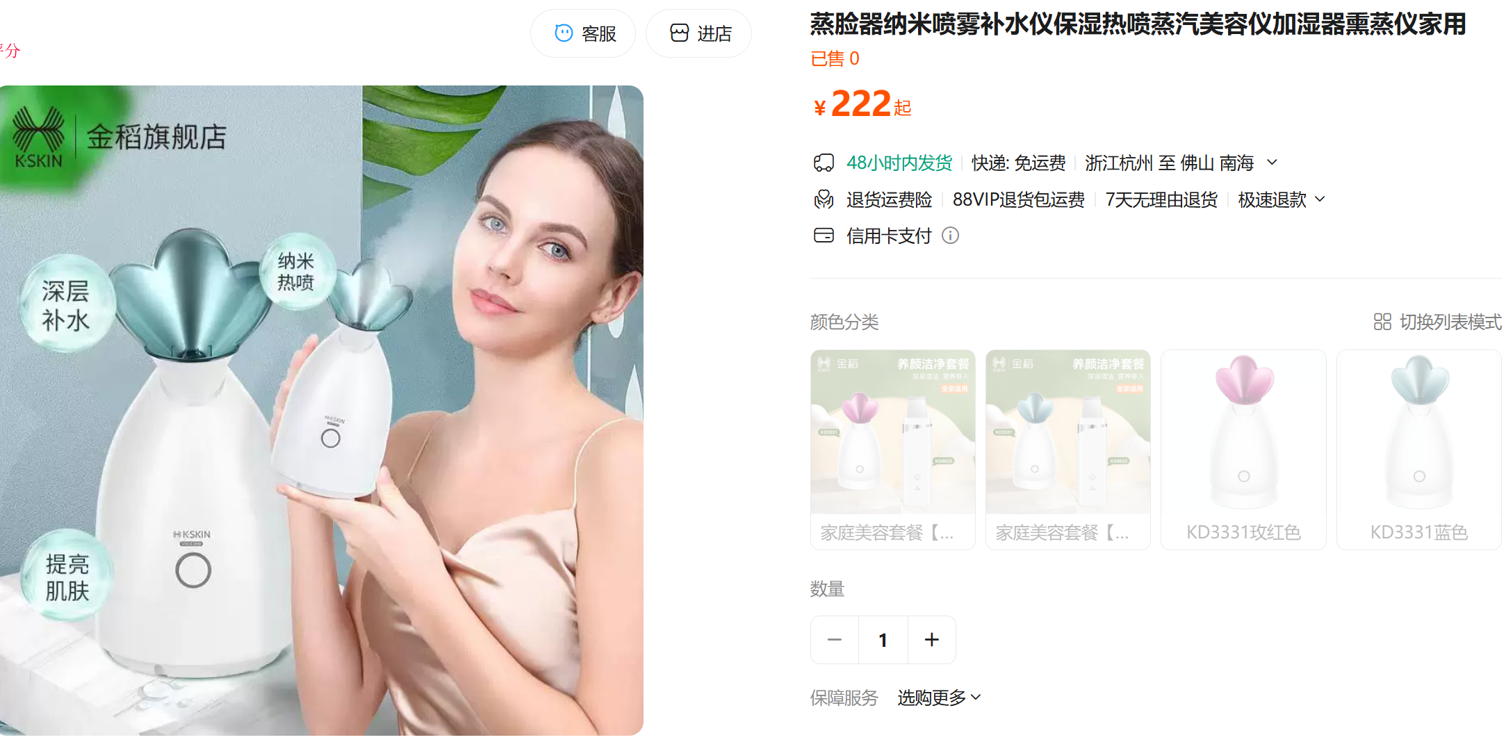 金稻 纳米喷雾补水仪 热喷蒸脸 面部清洁 KD3331
