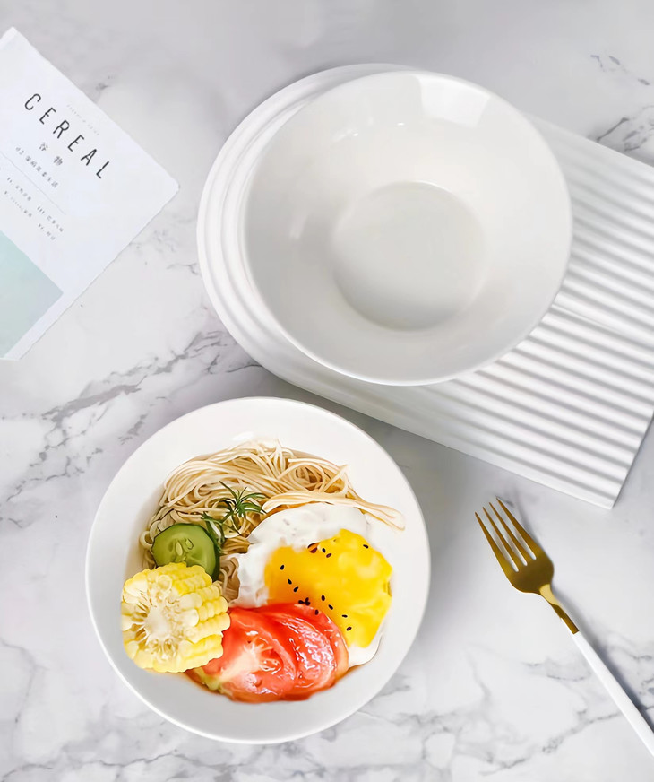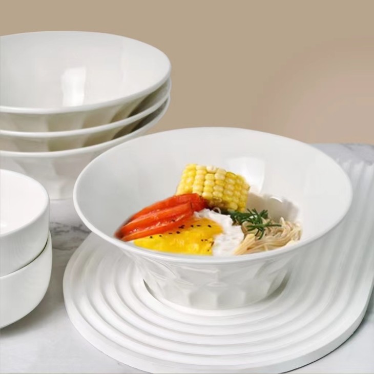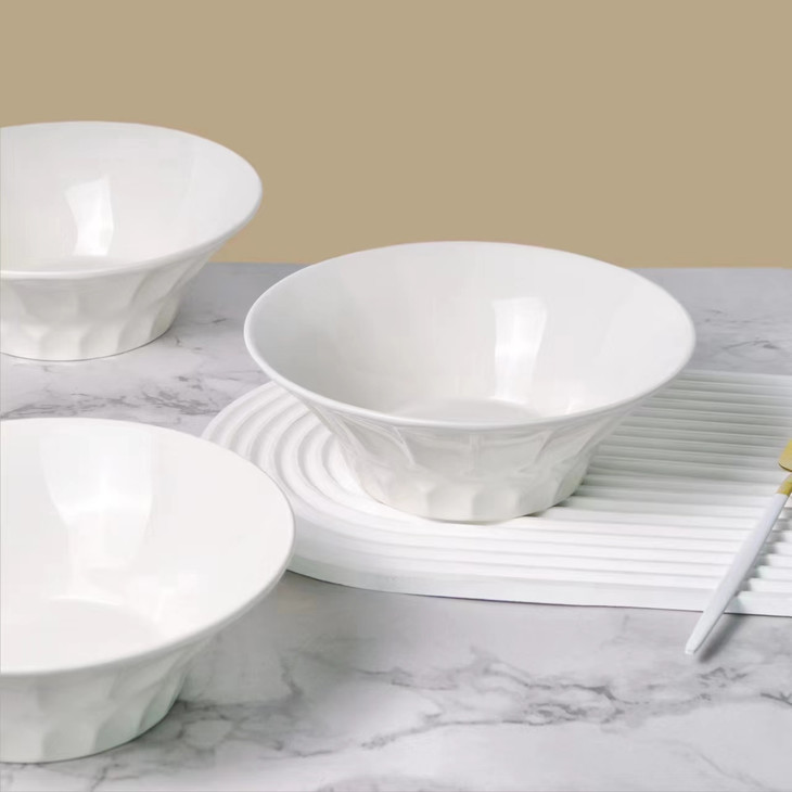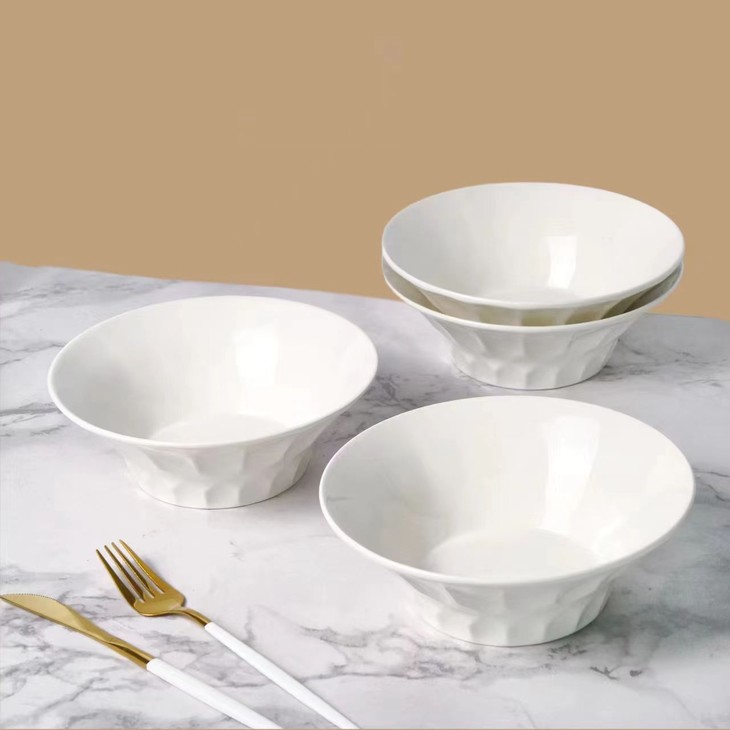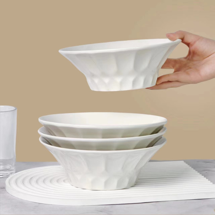 捡漏29.9💰️5个❗️只有1000组❗️英国百货订单出口→内销❗️白色餐具永远的神❗️ 🔴装什么都显贵❗️釉面温润,灼瓷【8英寸浮雕高脚水晶白瓷碗】 🔴沙拉、嗦粉、面条、小炒,家里使用率第一