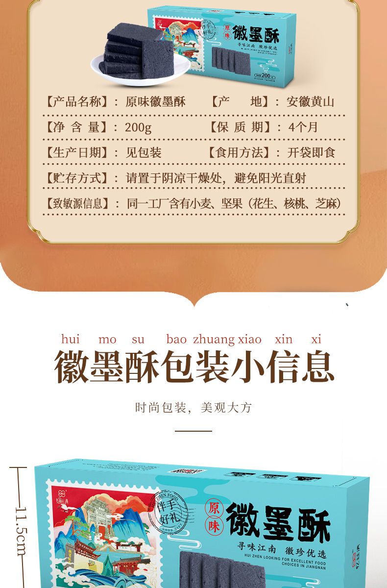 徽墨酥 正宗安徽黄山特产 徽州糕点墨子酥 黑芝麻手工茶点零食