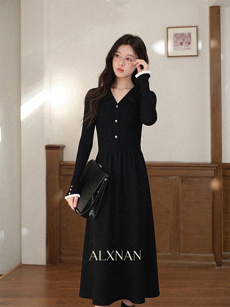 鹿向南「璀璨星河」法式V领连衣裙女2025新款秋冬气质显瘦A字裙子QYM002404-2/QYM002404-1