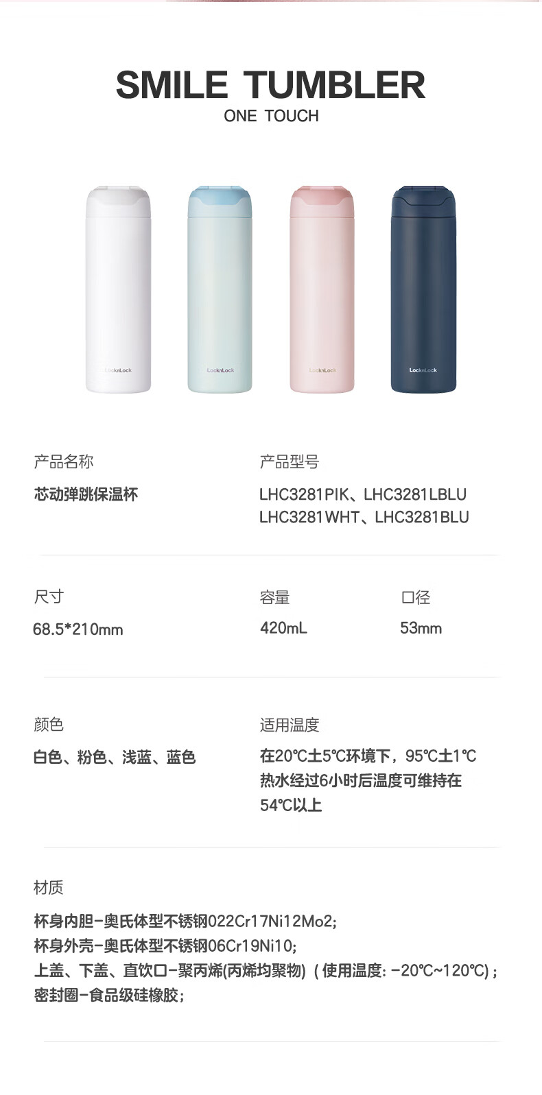 乐扣乐扣芯动弹跳 保温杯 LHC3281 WHT