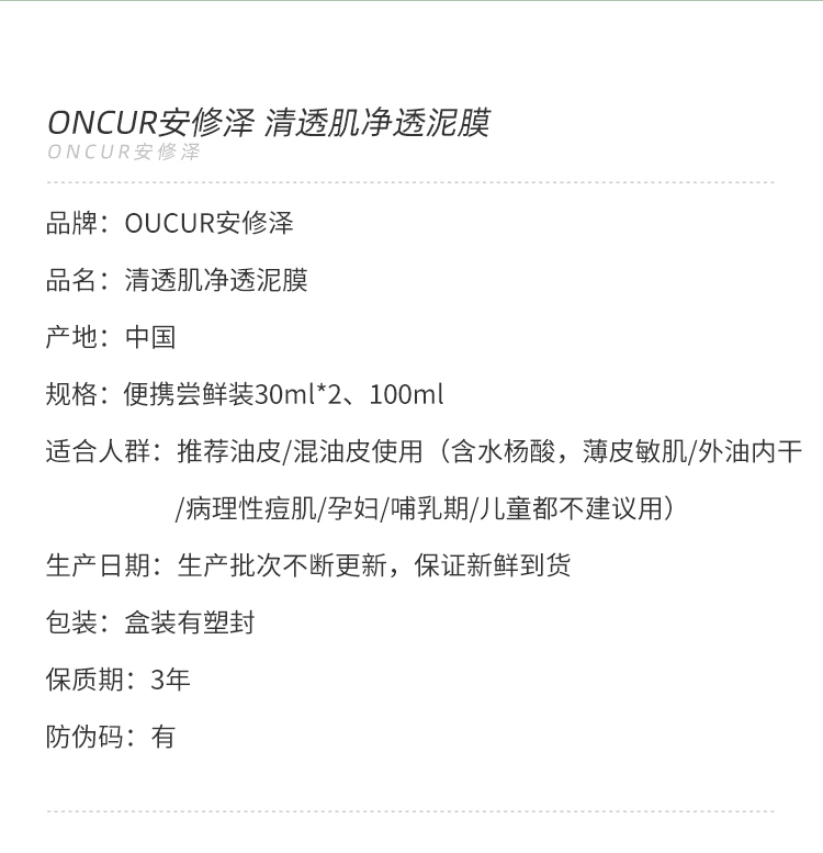 安修泽 多酸净透清洁泥膜 30g/100g 二代多酸泥膜