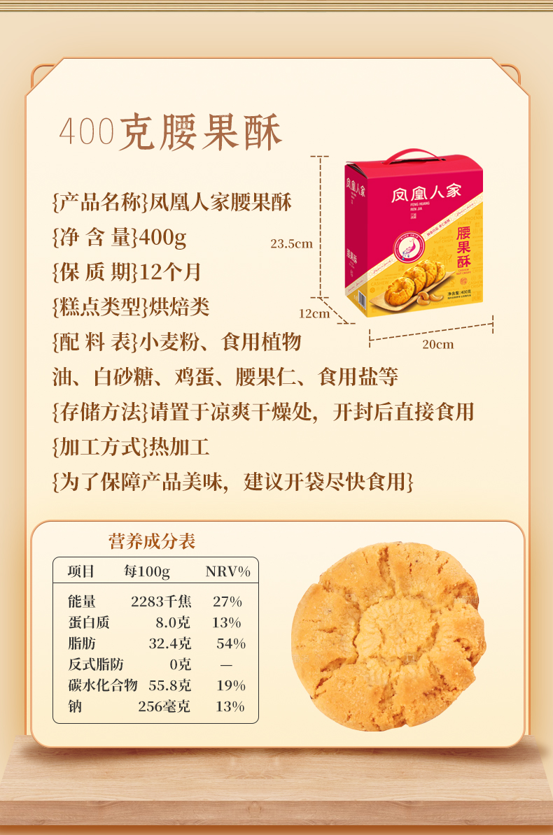 严选 | 凤凰人家点心礼盒组合 腰果酥400g+核桃酥400g+手提袋 年货礼盒