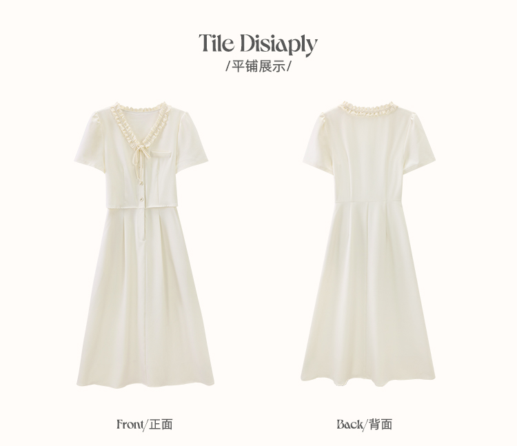 【65折秒杀】鹿向南「冰蓝诗语」杏色法式轻熟气质短袖连衣裙女夏绝美收腰长裙QJD00473-1