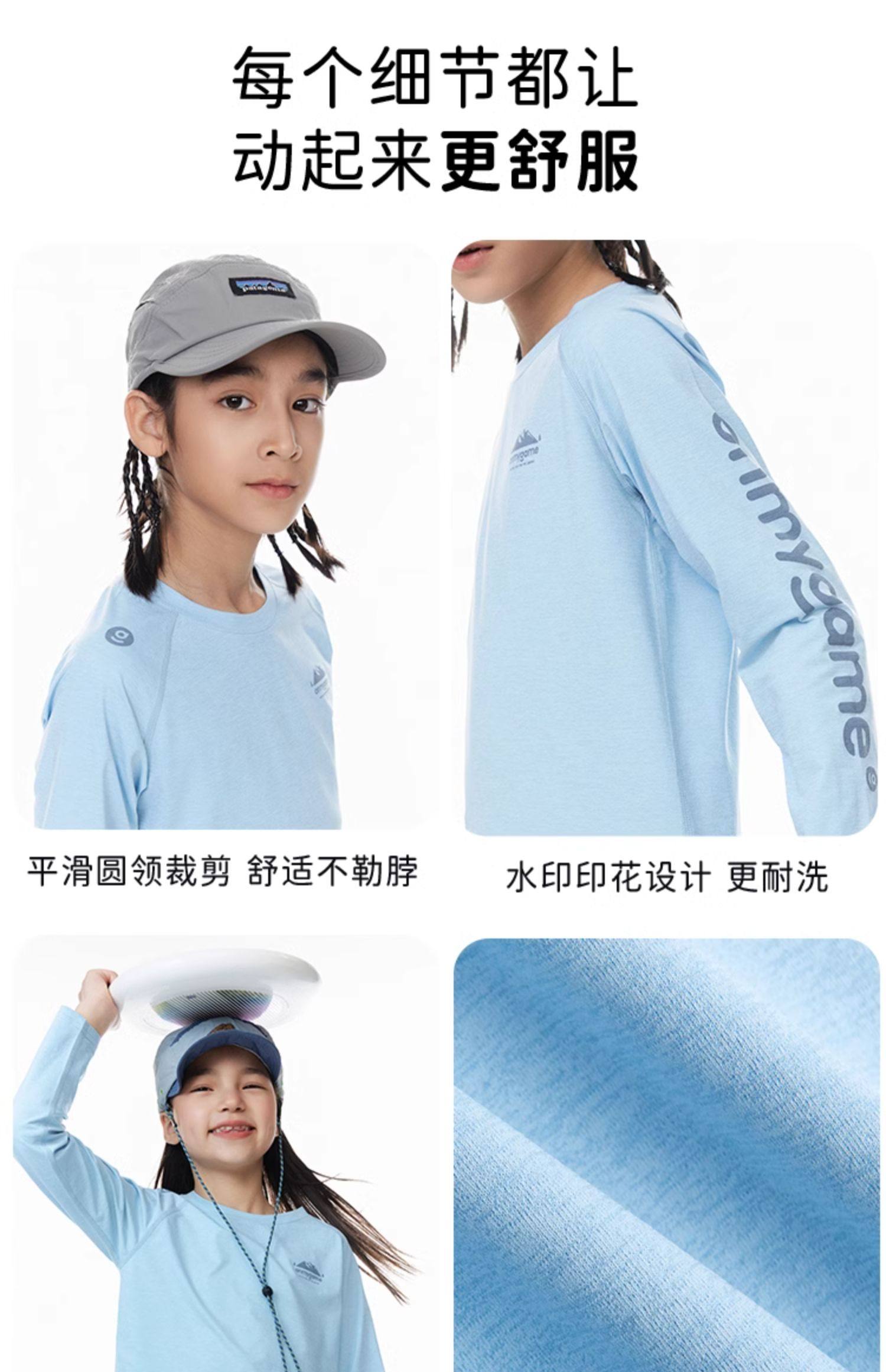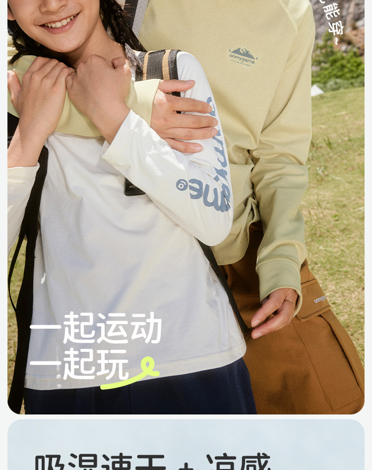 onmygame儿童长袖t恤运动男女童速干衣透气上衣春秋款2024新款