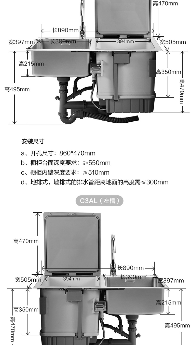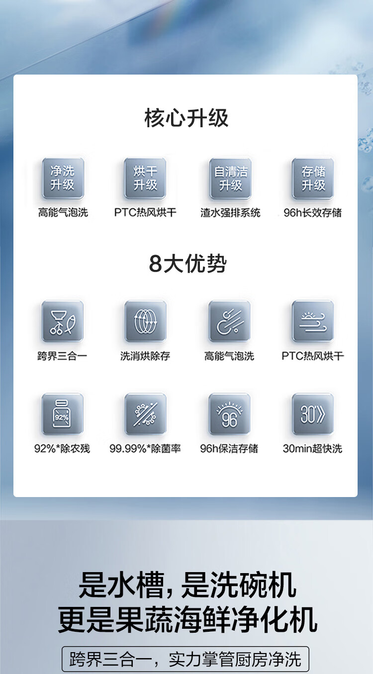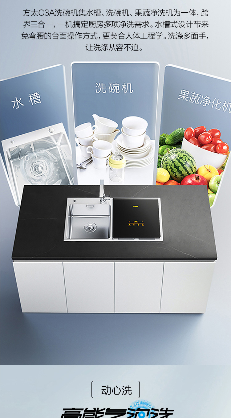 方太方太洗碗机水槽式家用 跨界三合一 全自动洗烘一体 高能气泡洗 加强除菌 洗海鲜果蔬去农残 C3A