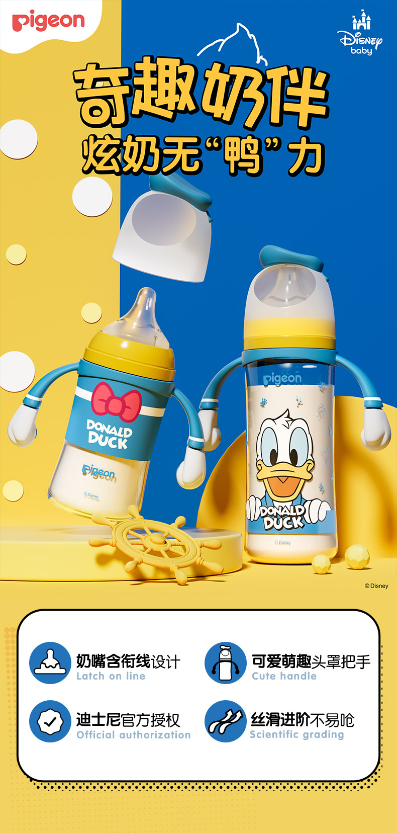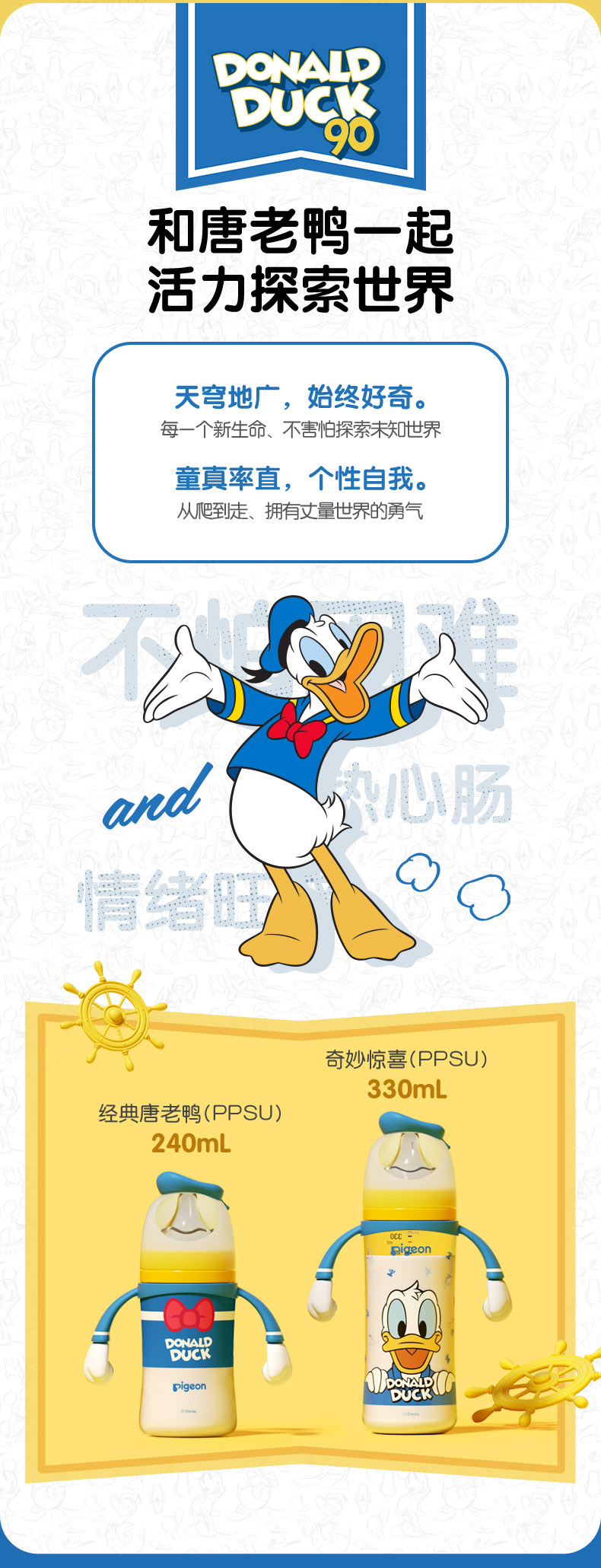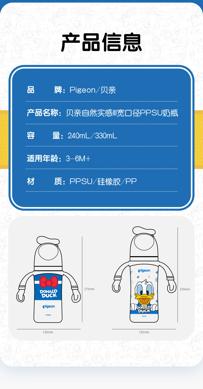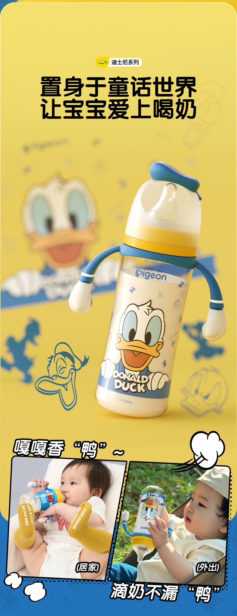 【官方自营】 PIGEON/贝亲 迪士尼PPSU唐老鸭彩绘防呛防胀气奶瓶240ml/330mL
