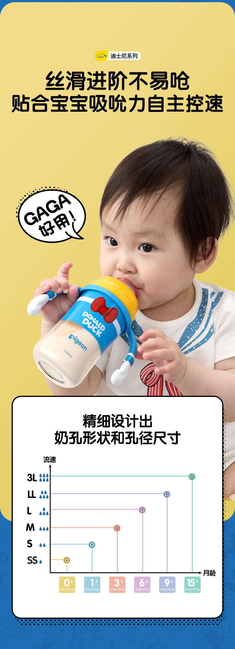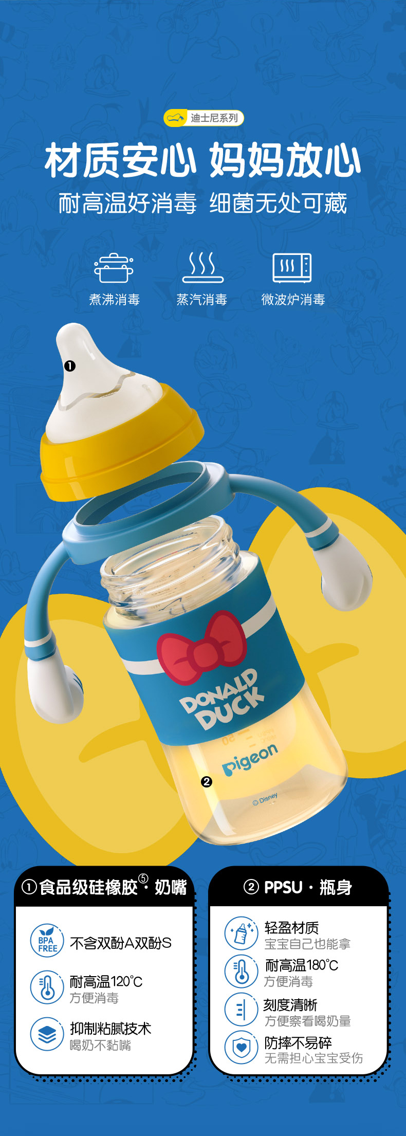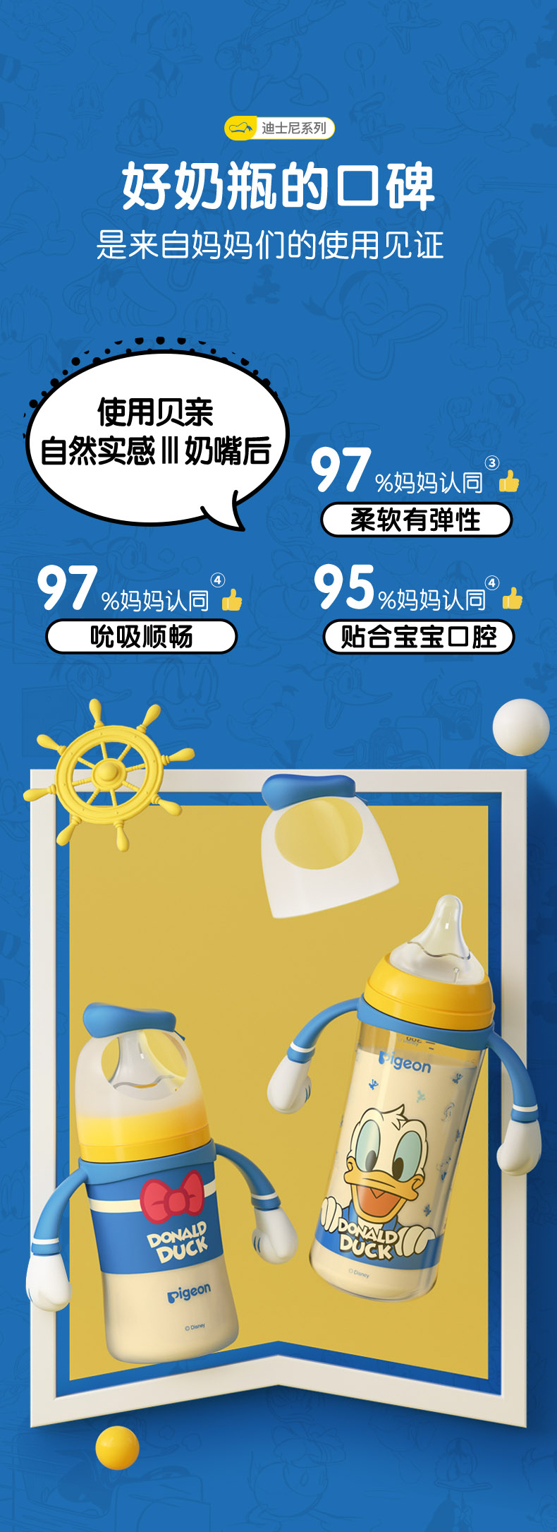 【官方自营】 PIGEON/贝亲 迪士尼PPSU唐老鸭彩绘防呛防胀气奶瓶240ml/330mL