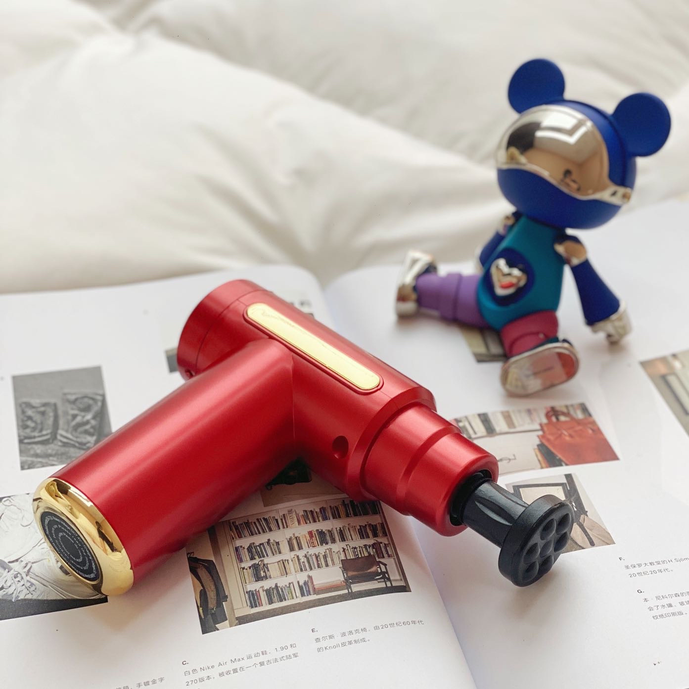 进来好好学,筋膜枪使用指南在这里 ‼ ✅筋膜枪正确的使用方法: ①顺着肌肉的纹理与走向,例如腿部的肌肉是竖向的,记得击打的时候顺着这个方向来 ②肩颈部位及背部避免垂直击打哦,以免重力伤到脊椎,可倾斜按摩头缓慢推动 ③不同身体部位搭配不同的按摩头,更利于肌肉放松 ✅ 按摩头的使用 ①圆球头:适用于肩颈、手臂、腰背、臀腿部等大肌肉群 ②U型头:适用于肩颈、脊柱两侧肌群、跟腱肌肉 ③扁平头:适用于手臂、腰背、腿部等大肌肉群 ④圆柱头:适用于手掌、足底等冲击深沉组织