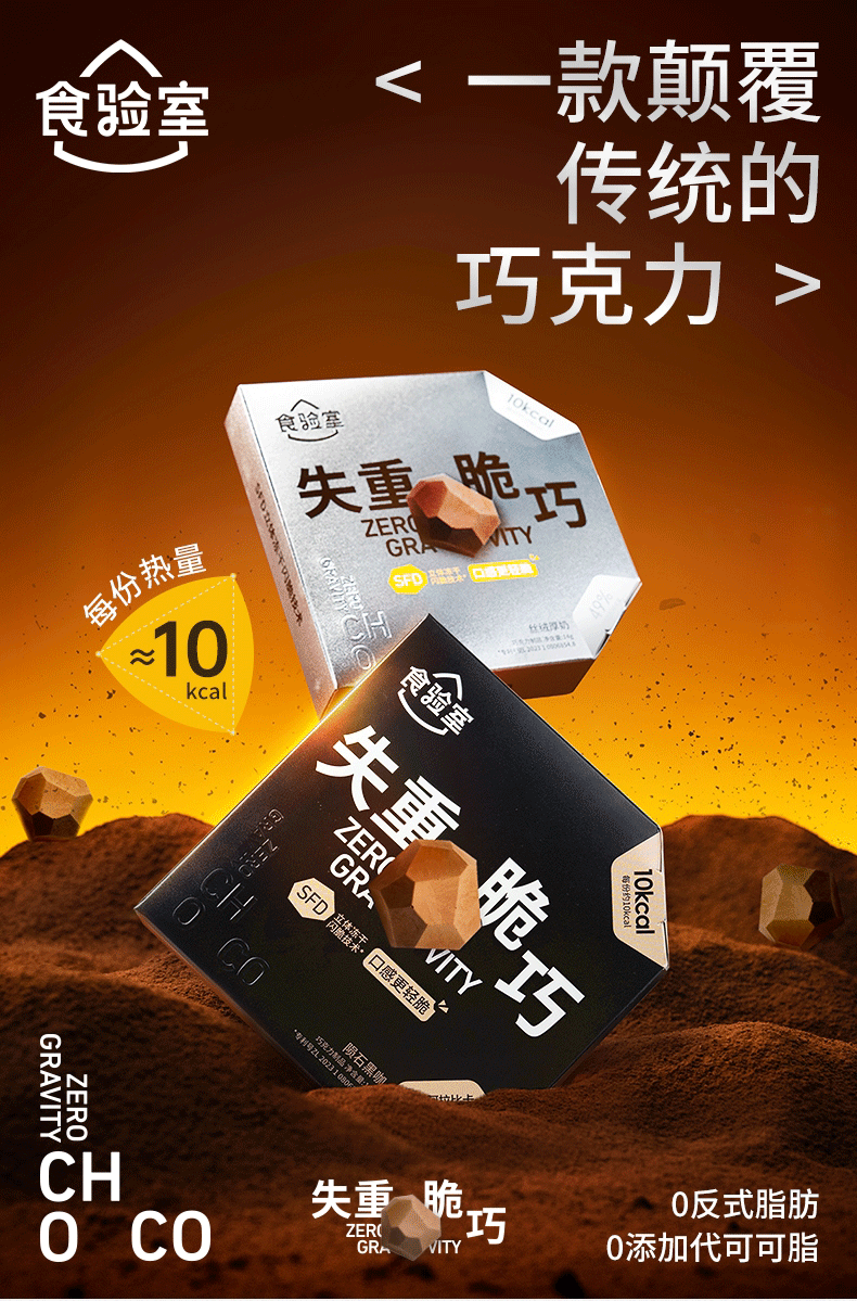 【食验室】纯可可脂失重脆冻干巧克力*6包-14g/包