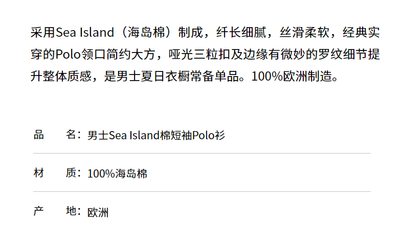 【海岛棉系列】SUNSPEL男士Sea Island海岛棉短袖Polo衫纯色舒适
