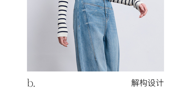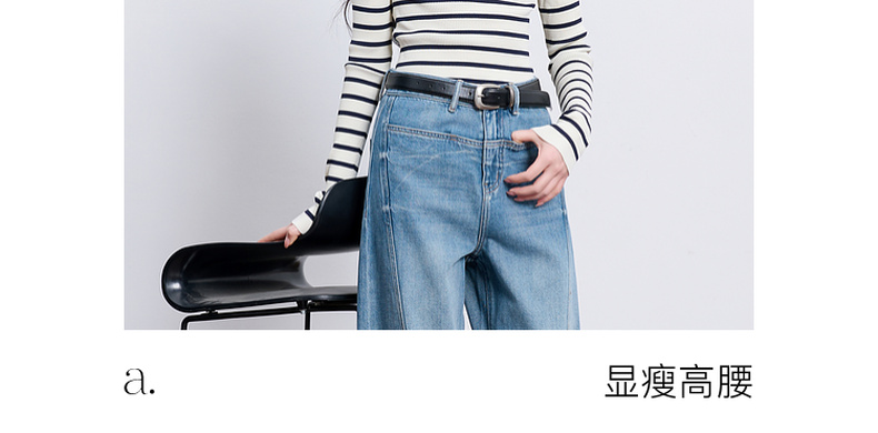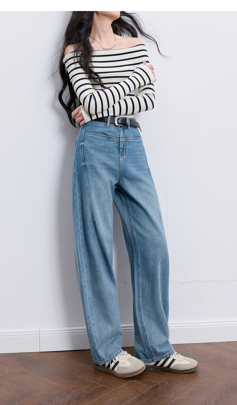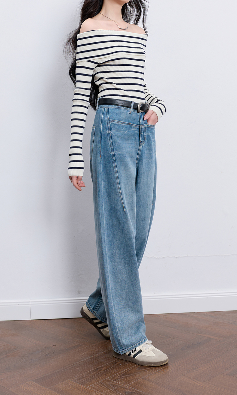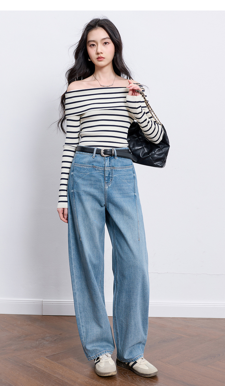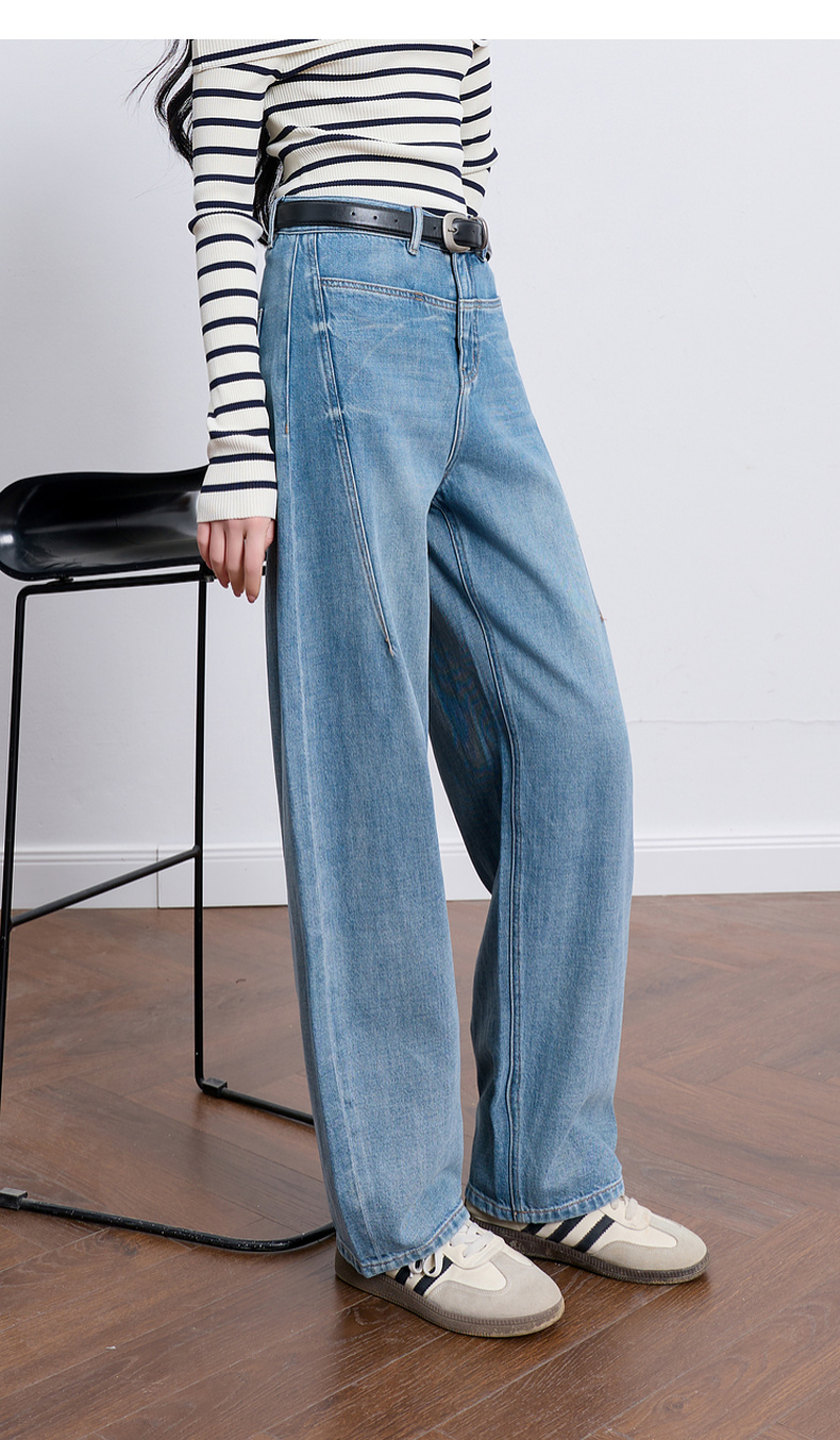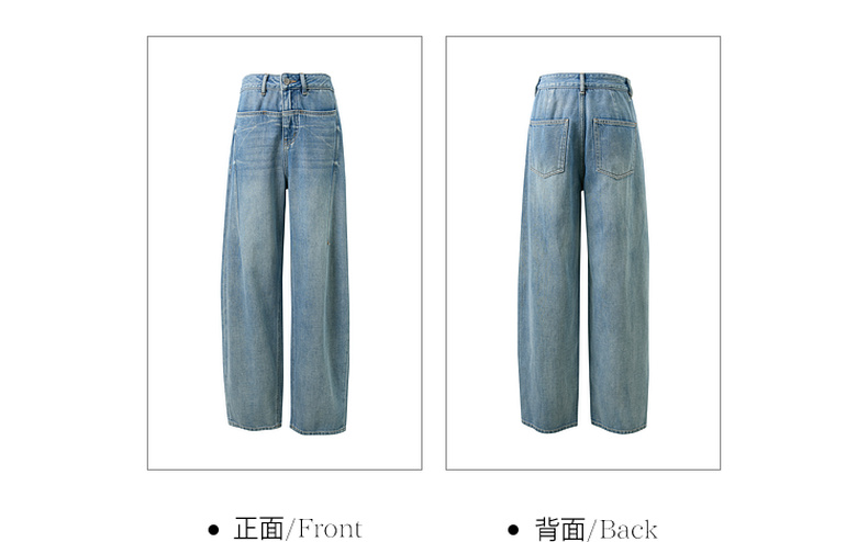 【100棉】三彩2026春季新款休闲牛仔裤宽松弯刀裤高腰长裤设计感M