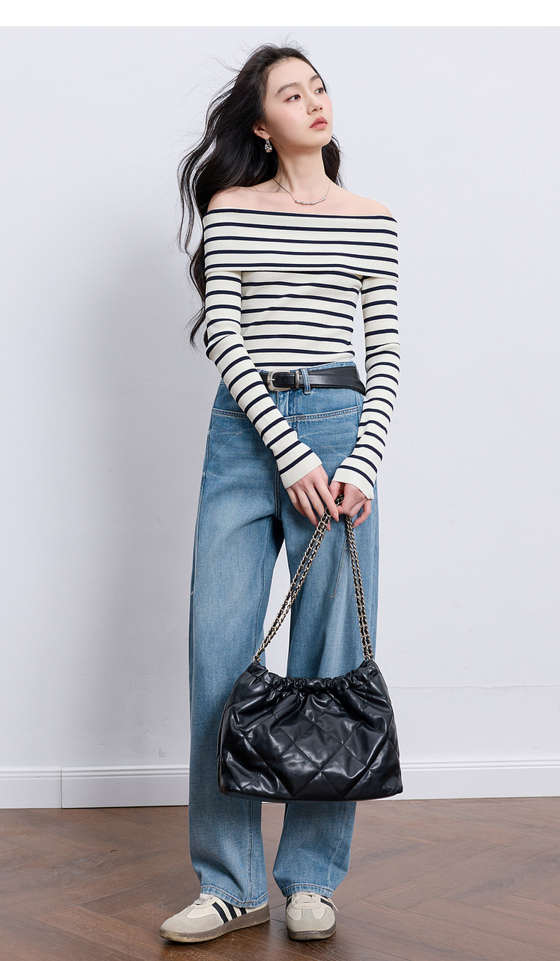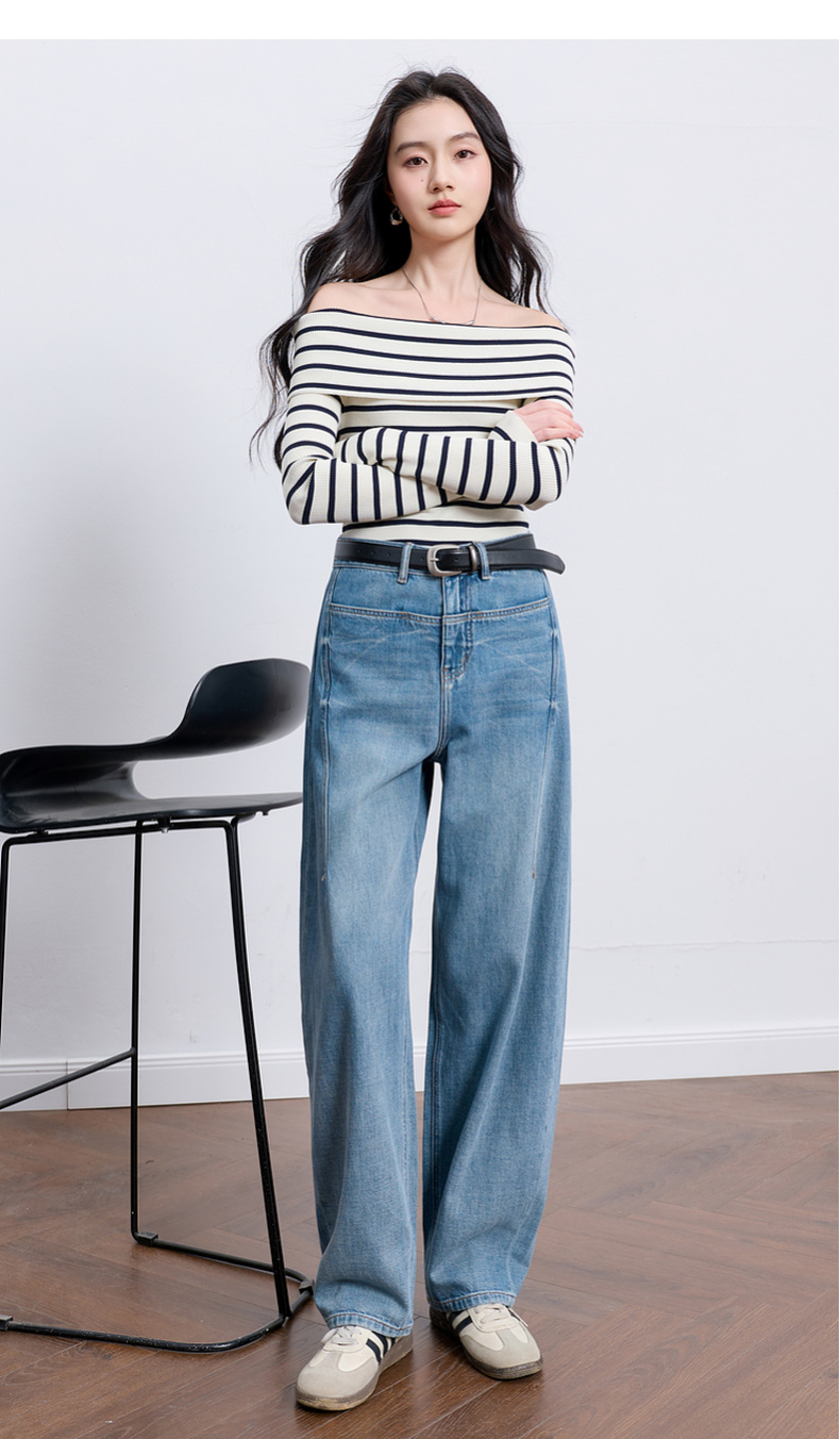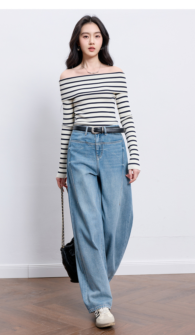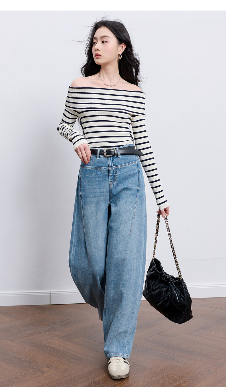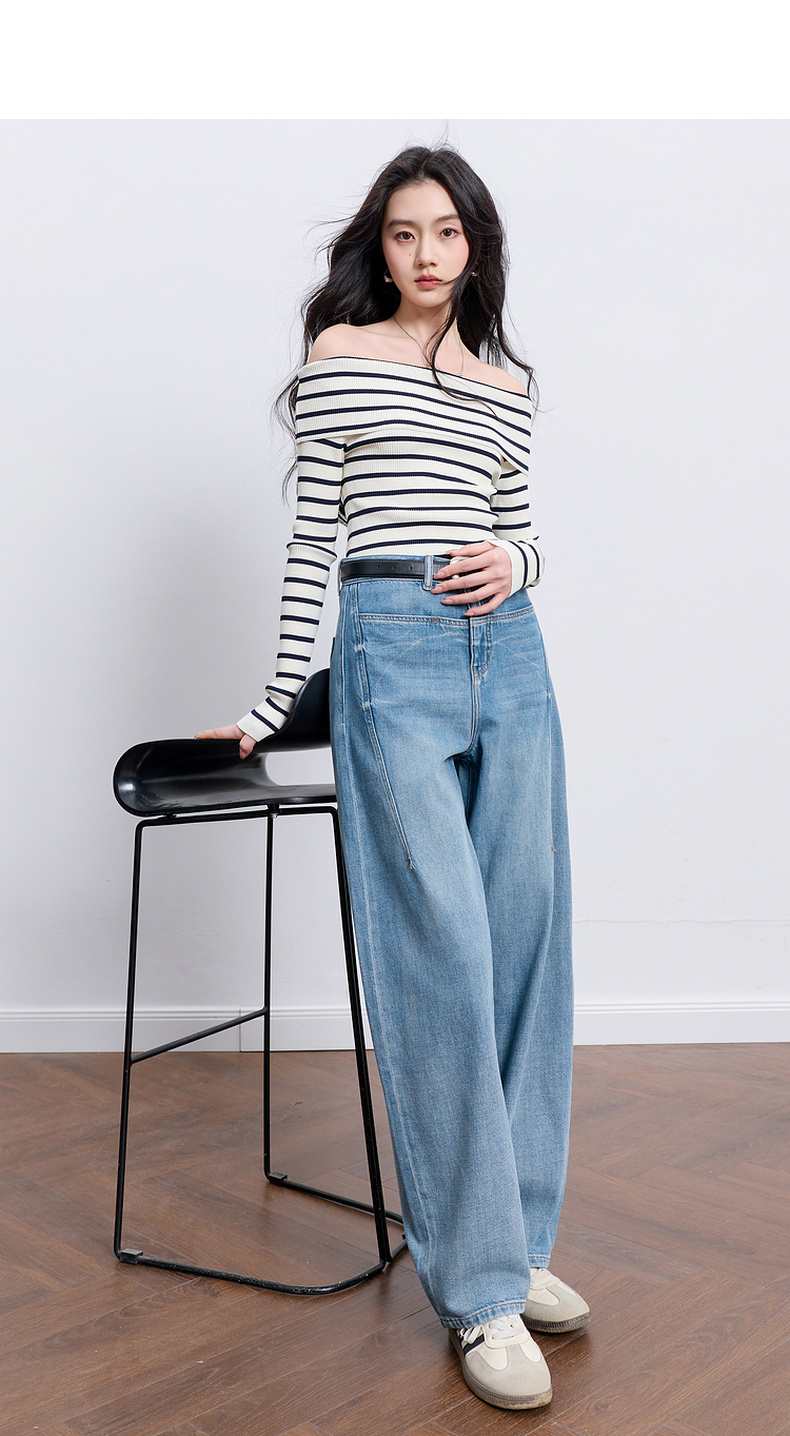 【100棉】三彩2026春季新款休闲牛仔裤宽松弯刀裤高腰长裤设计感M