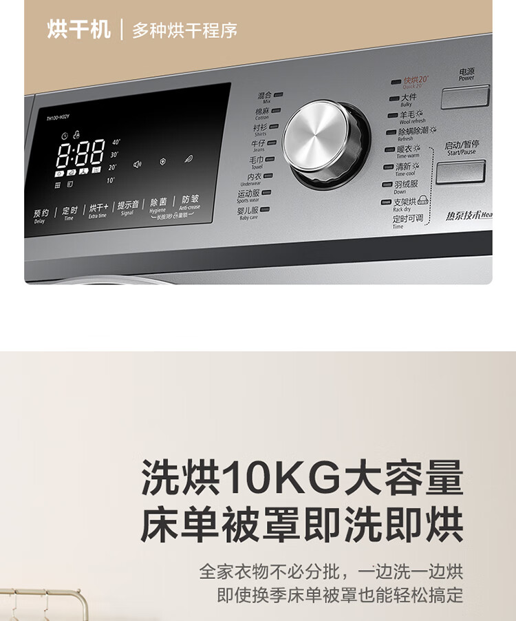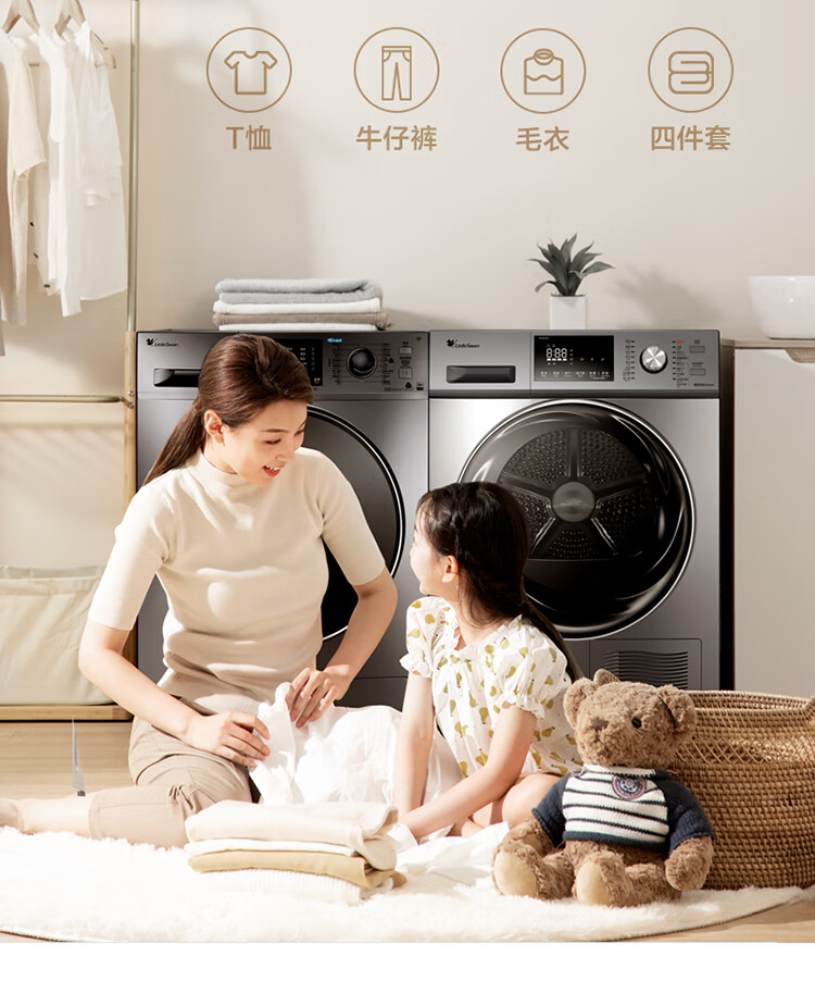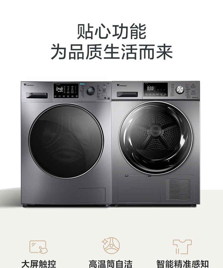 小天鹅(LittleSwan)洗烘套装10kg滚筒洗衣全自动+热泵烘干 水魔方 智能TG100V86WMDY5+TH100-H32Y